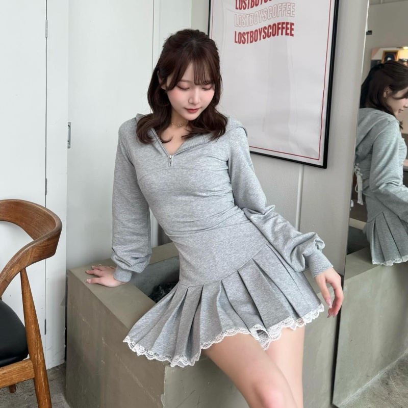 バストを美しく見せるカーブ切り替えと、コンパクトなウエスト×プリーツシルエットでスタイルアップを叶える一着♡
