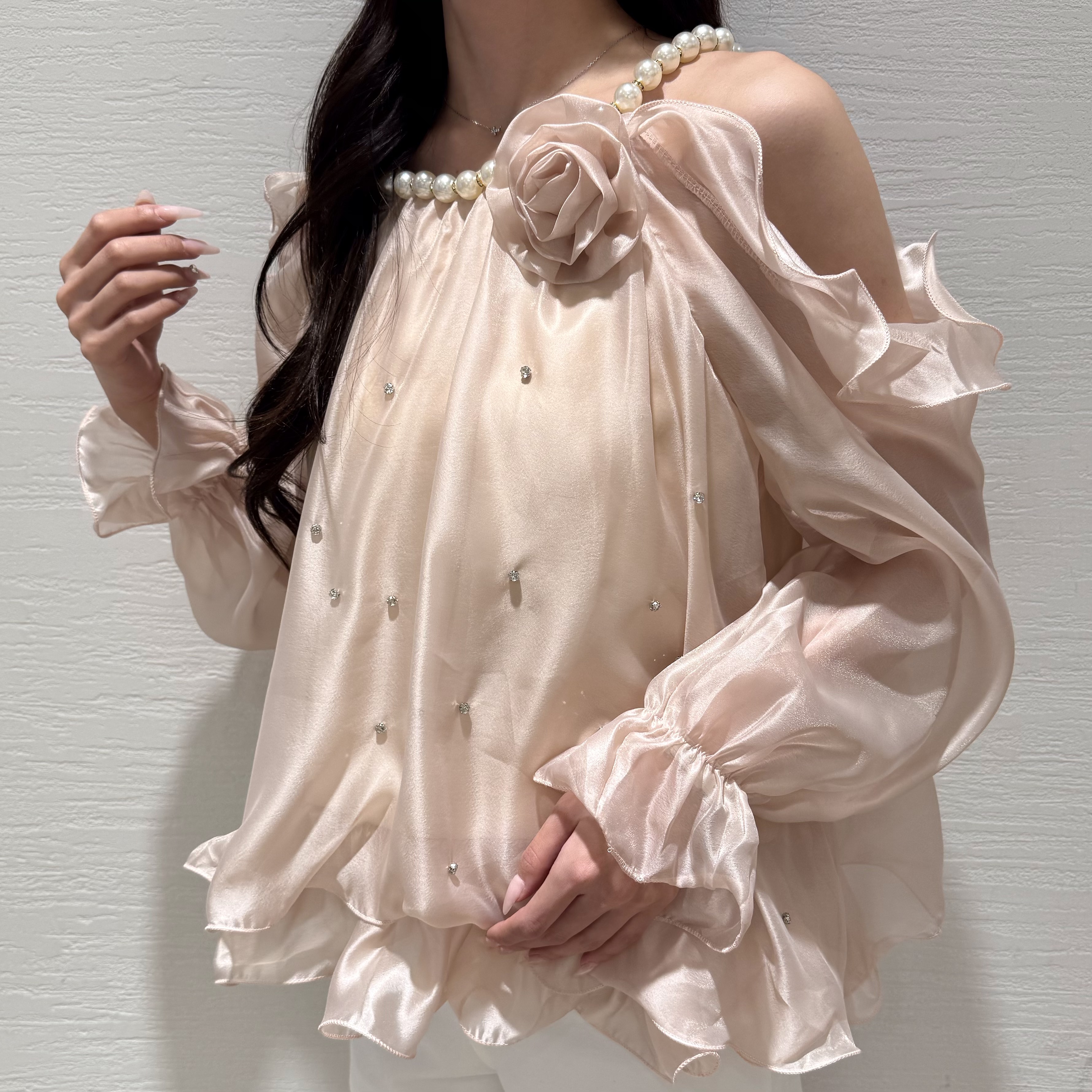 女性らしい装飾がたっぷり詰まったオフショルブラウスが入荷しました💕💕