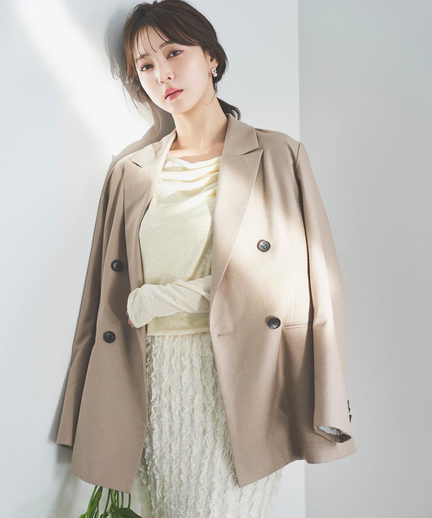 程よくヒップにかかる少し長めの丈感が縦ラインを強調し、スタイルアップを叶えるテーラードジャケット。