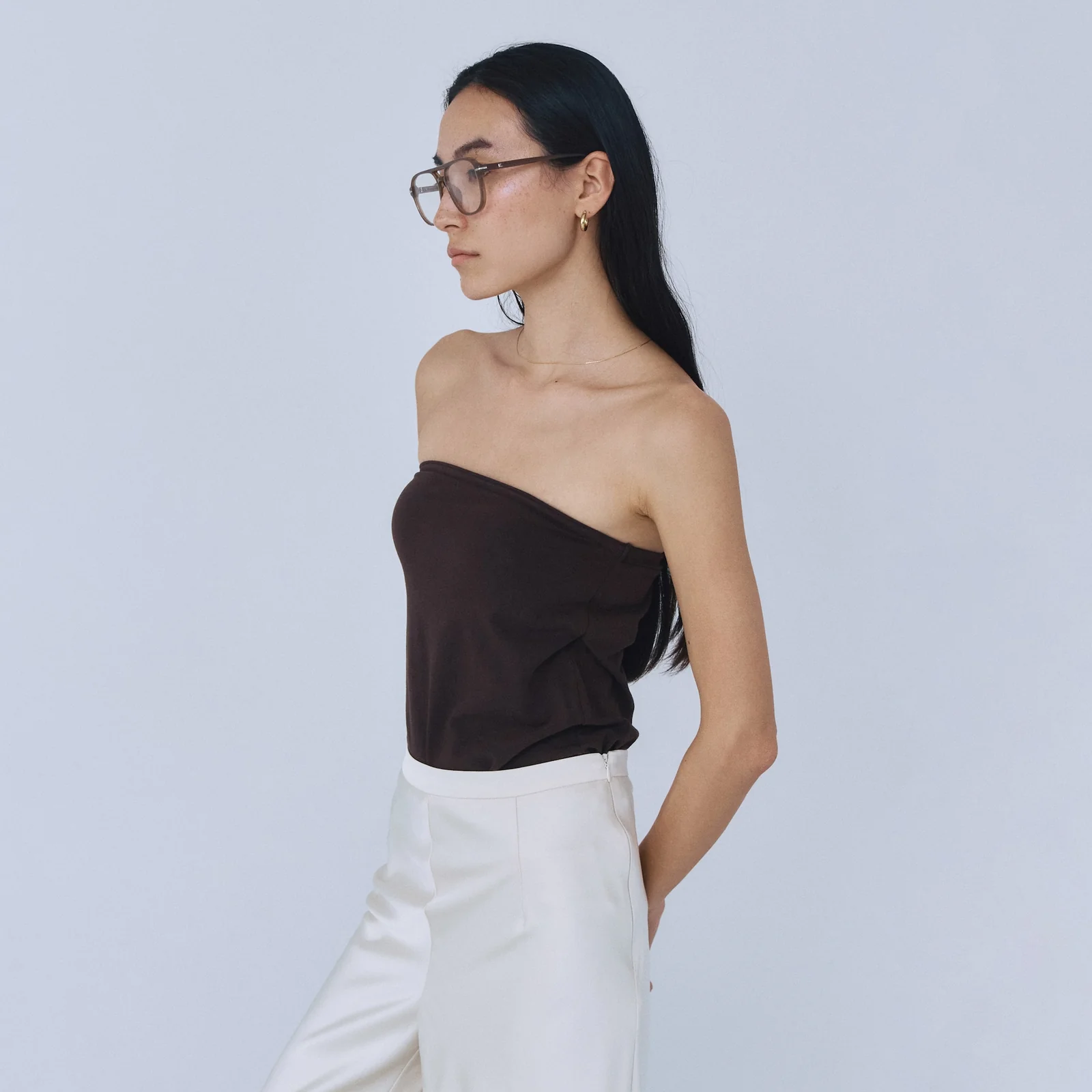 極上の滑らかさで人気の〈スムースタッチ〉シリーズから、ベアタイプが初登場。1枚あると便利な、着回し力抜群のシンプルデザイン。もちろんパッド付きです。
