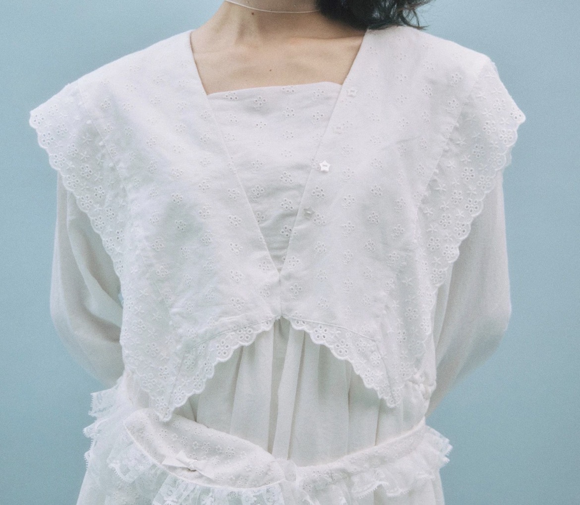 襟にはコットンレースを使用し、甘さと繊細さをプラス。