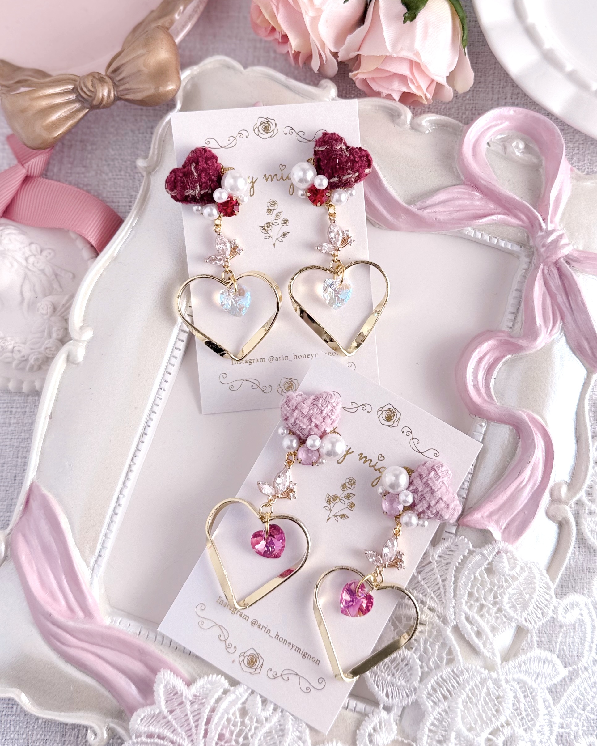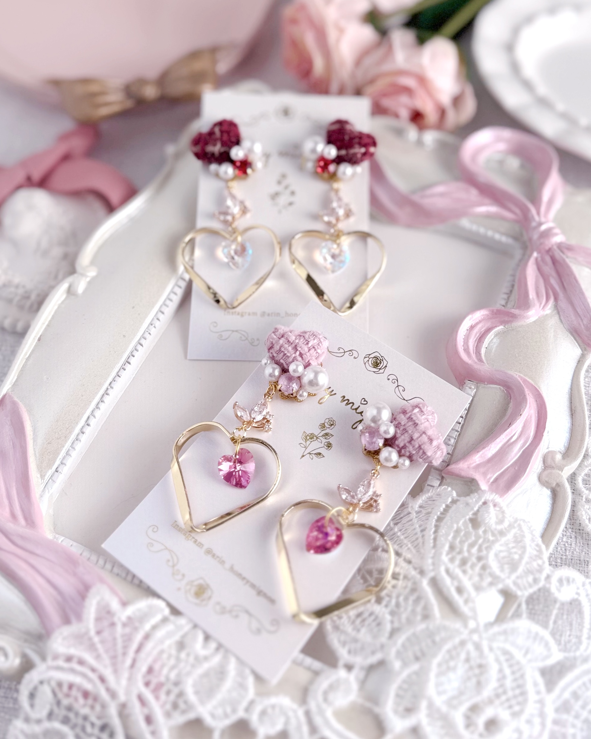 ゆらゆら揺れる大きなハートが耳元をぐっと華やかにしてくれますᴗ ̫ ᴗ ♡
