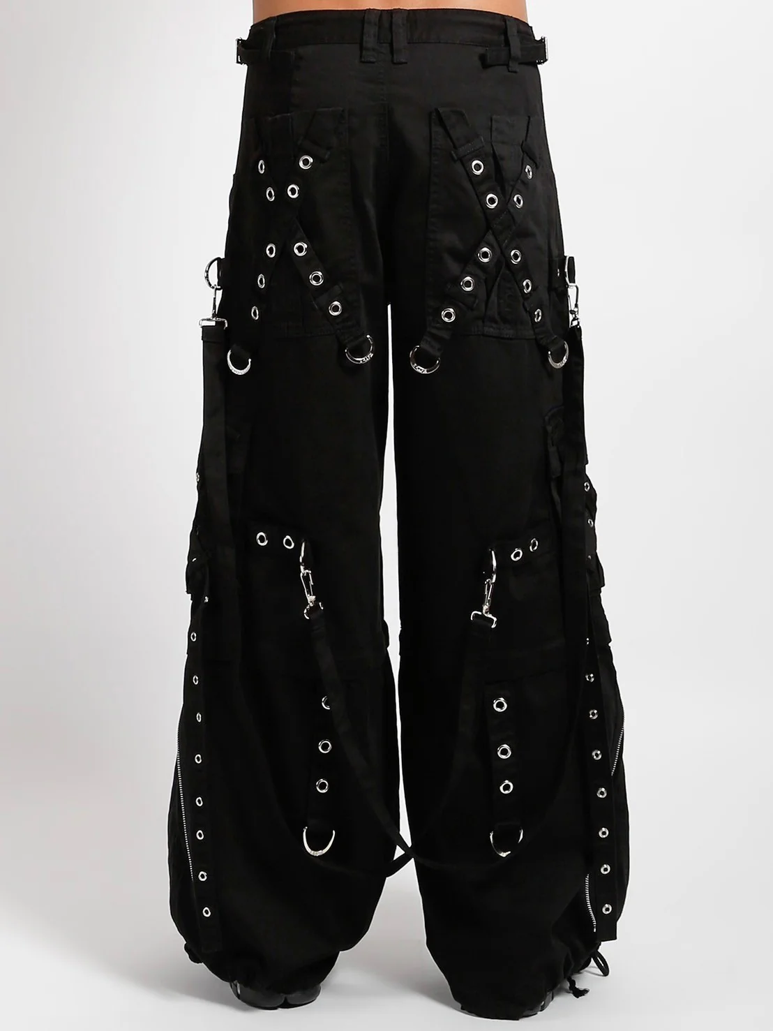 ベルトやリングがたくさん付いた、どこから見てもインパクトのあるパンツ!膝にジップがついているので外せば簡単にハーフパンツにも変身する2WAY仕様になっています!