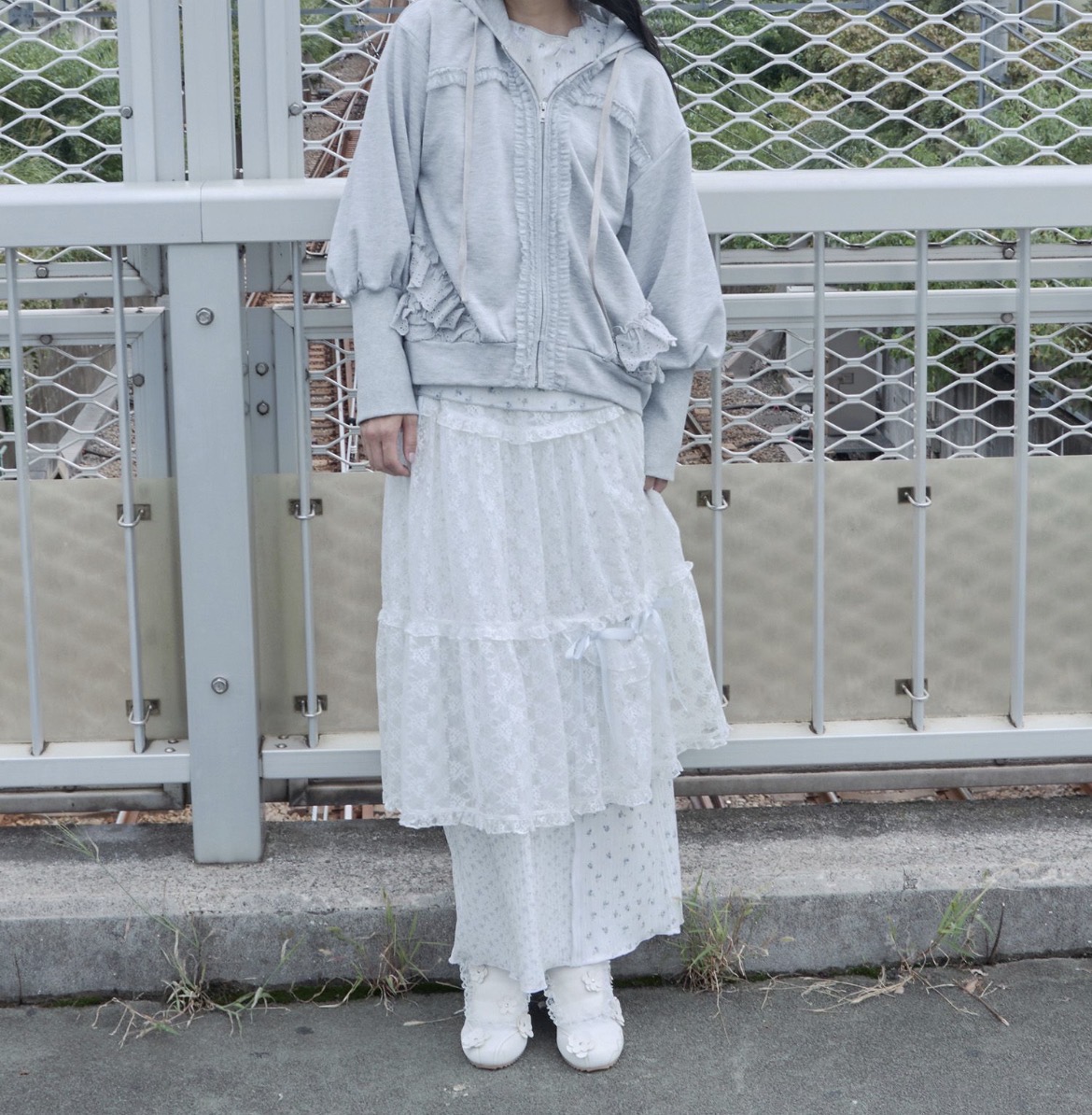 2種類の生地を組み合わせた遊び心のあるストレートスカート。