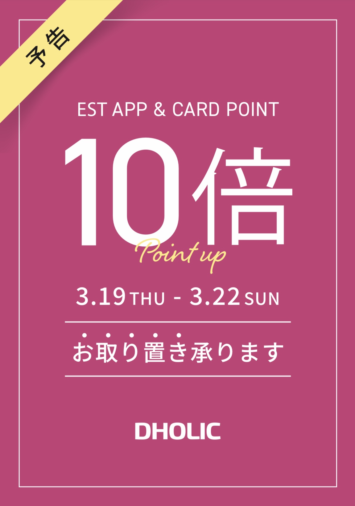 3/19(木)〜3/22(日)4日間限定ESTポイント10倍!