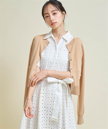 ほんのり透け感のあるシアー素材を使用したニットカーディガン。