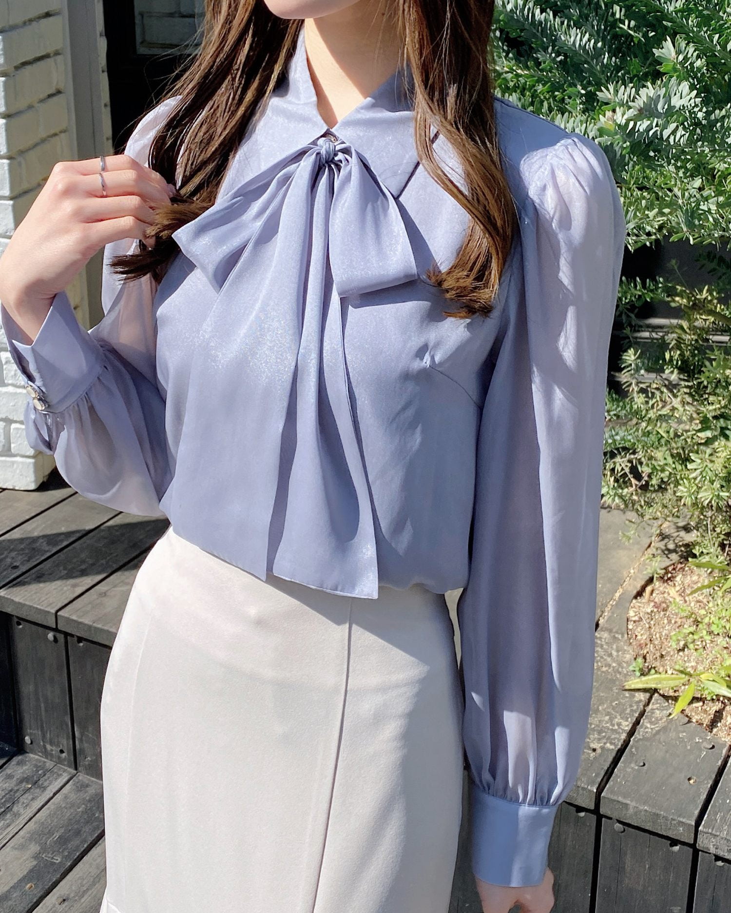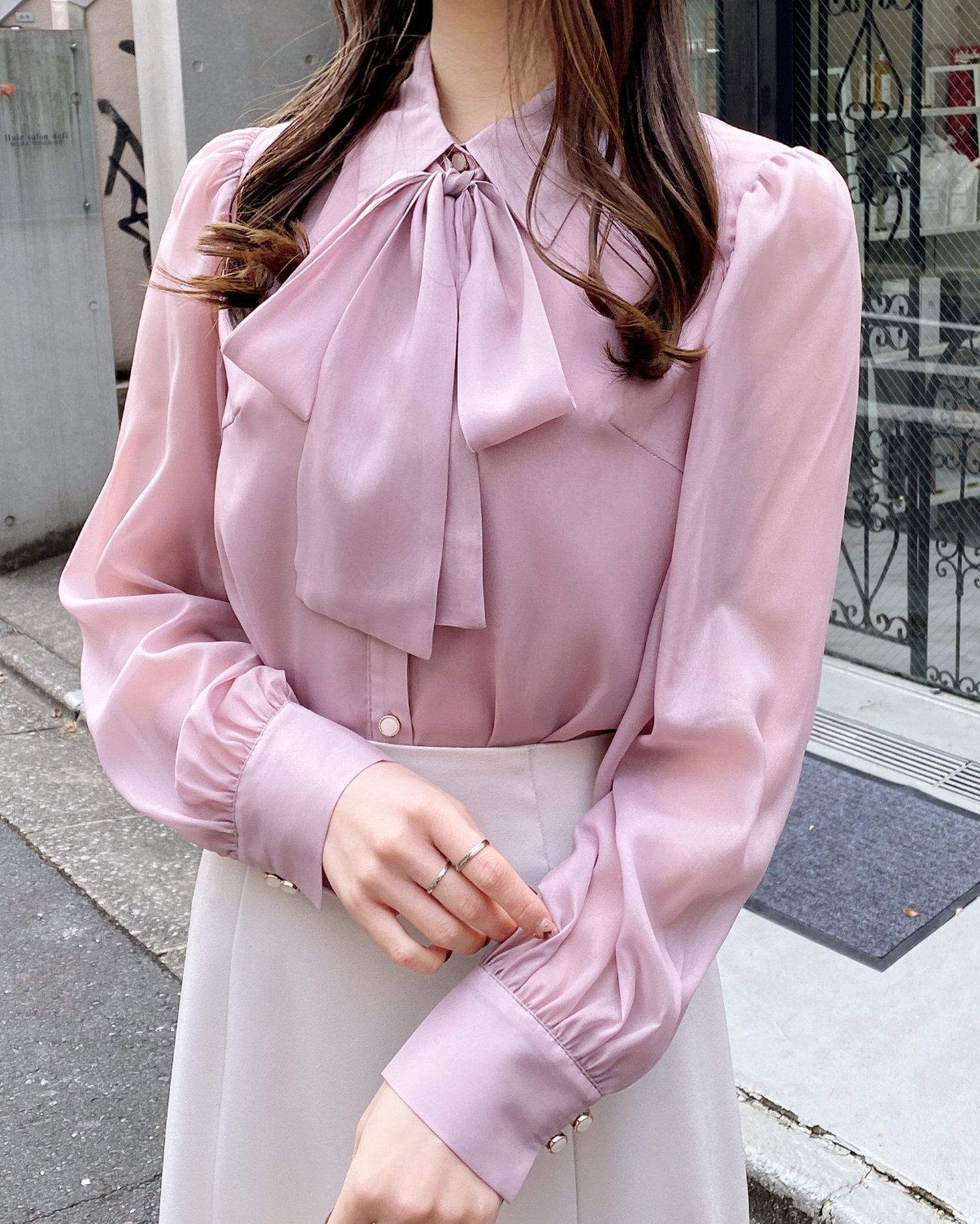 ラメシアー素材が上品な印象のボウタイブラウスが入荷致しました👚