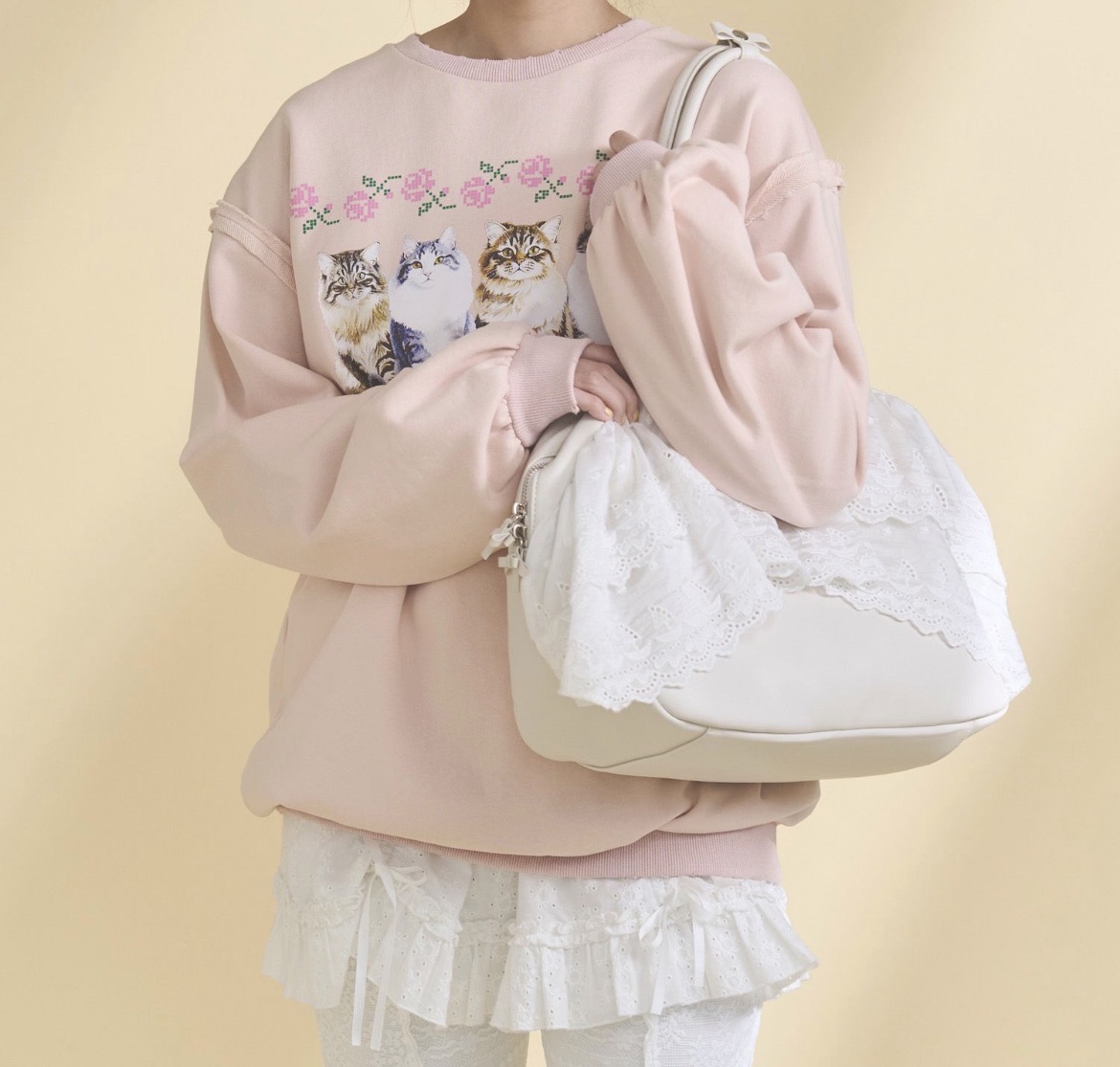 シングルなボストンバッグが多い中で、甘くて可愛いレースデザインがひとつあるだけで気分が上がる特別な存在。