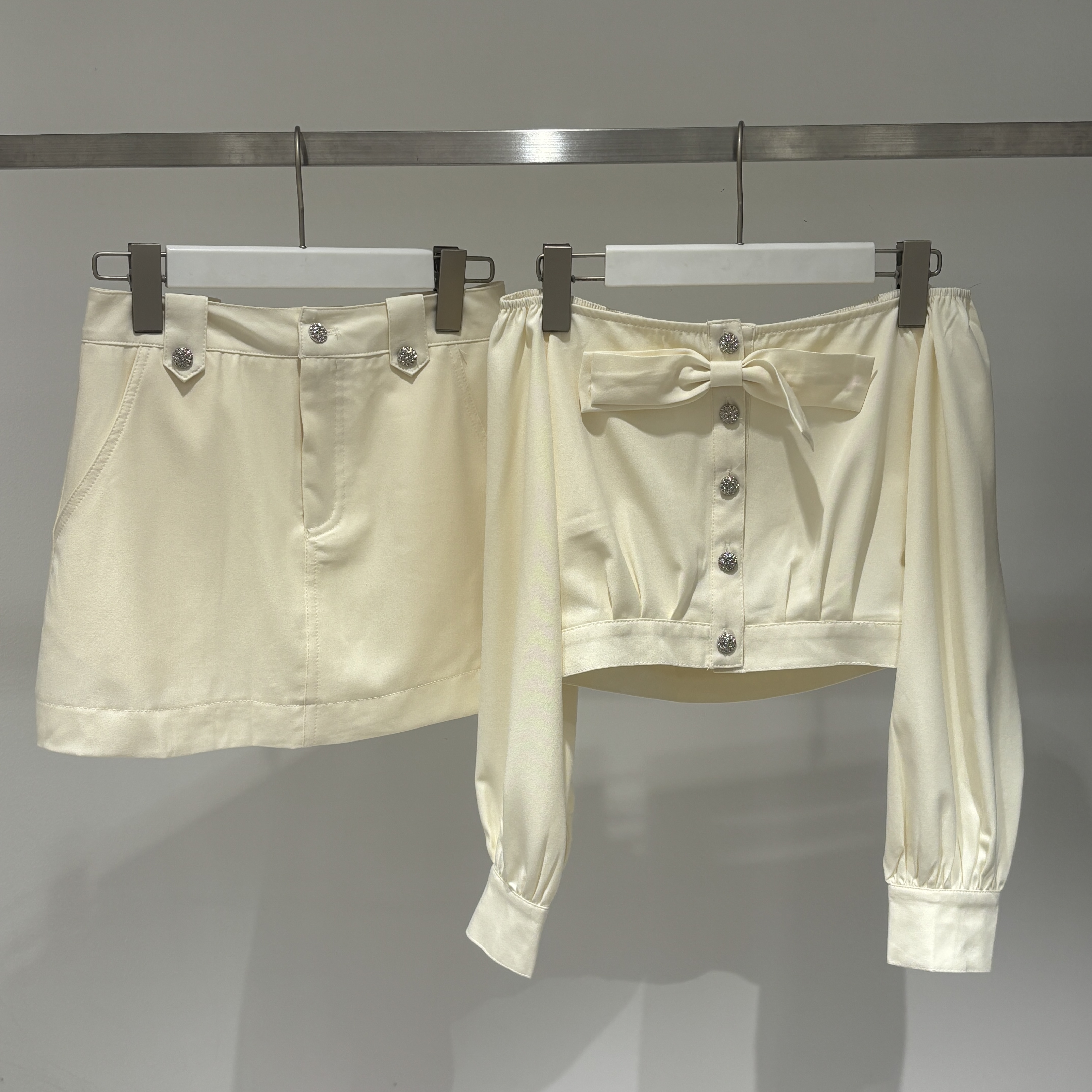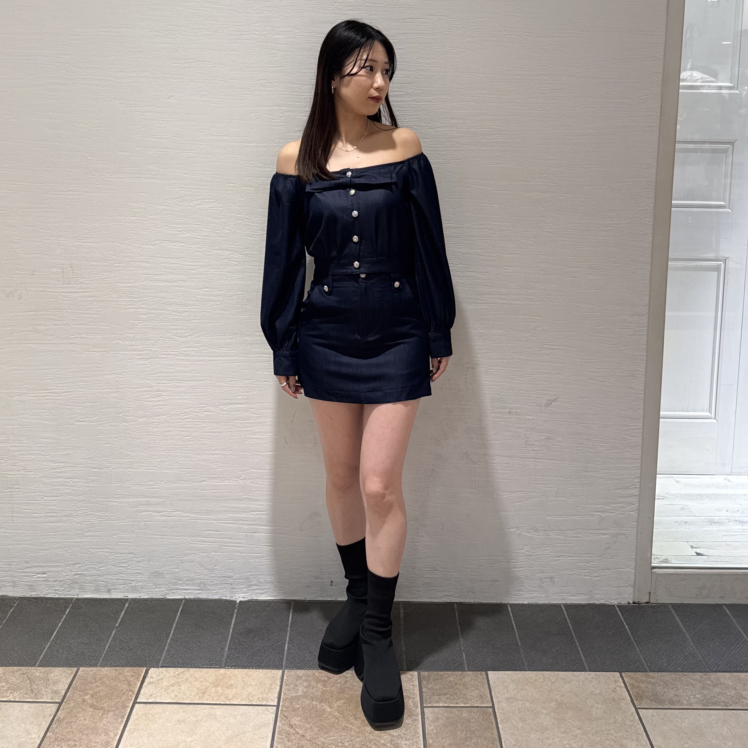 ◯リボンオフショルトップス&ミニスカートSET ¥9,980(tax in)