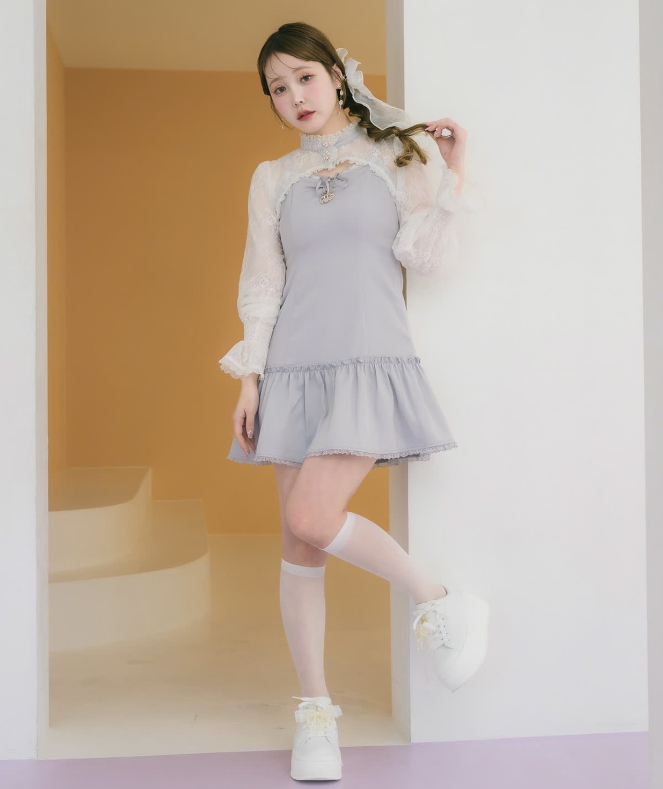 季節の変わり目にちょうどいいセットアイテム。レースボレロがほどよい抜け感をプラスしてくれます。キャミワンピースは胸元のギャザーがレディな印象に♡ウエストはカーブを持たせつつ、広がりを抑えたラインで大人っぽいシルエットに◎