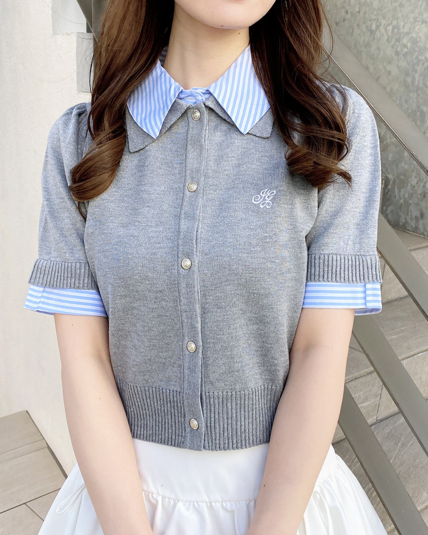 シャツにカーディガンを合わせたようなドッキングデザインで、1枚ですっきり着られるアイテムとなっております👀✨
