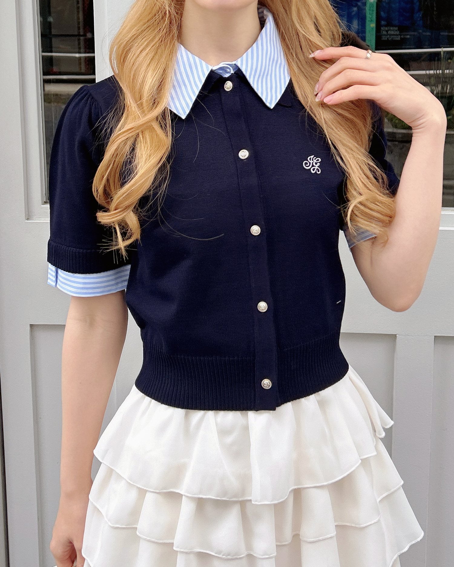 スクール&ガーリーな雰囲気のレイヤード風半袖ニットトップスが入荷致しました💞