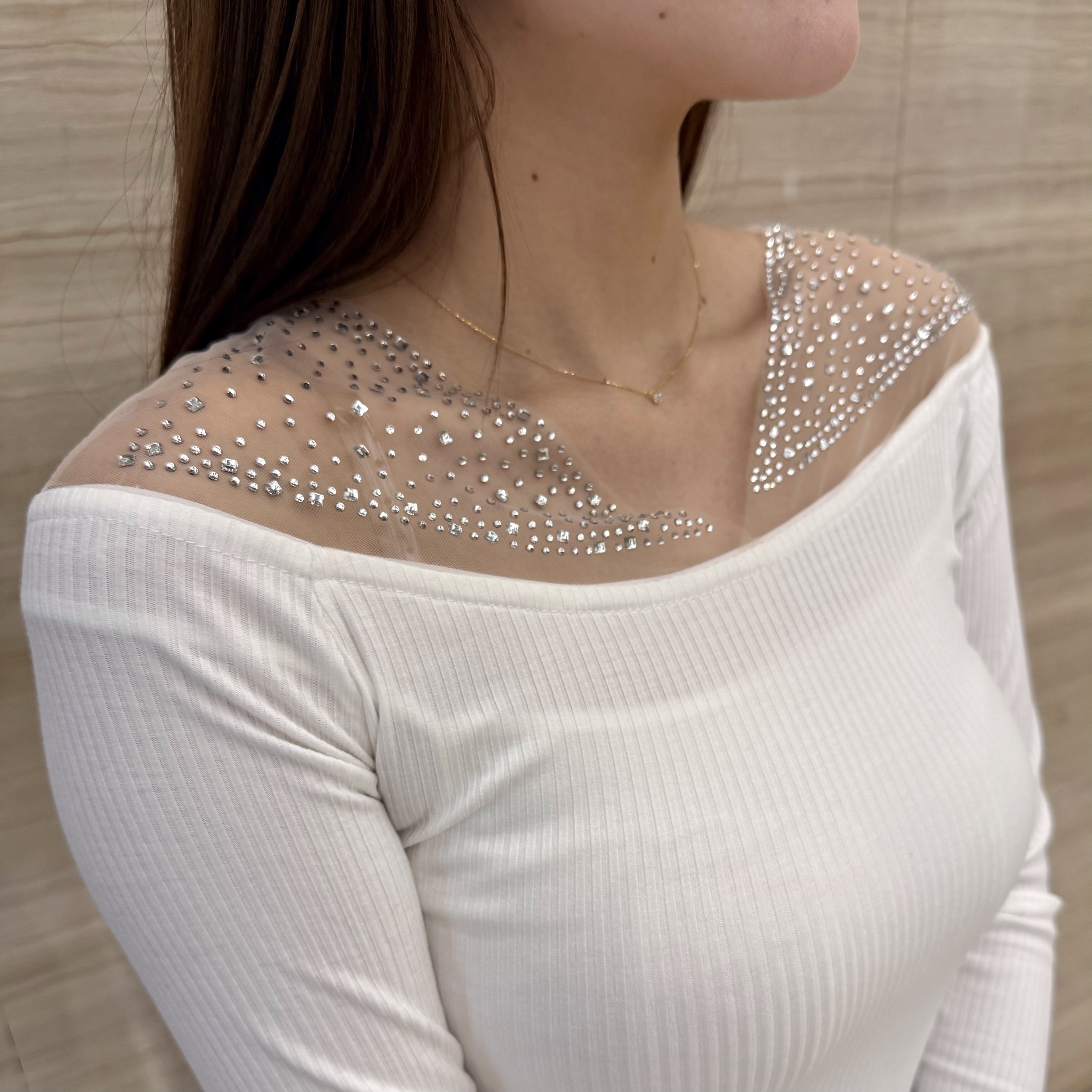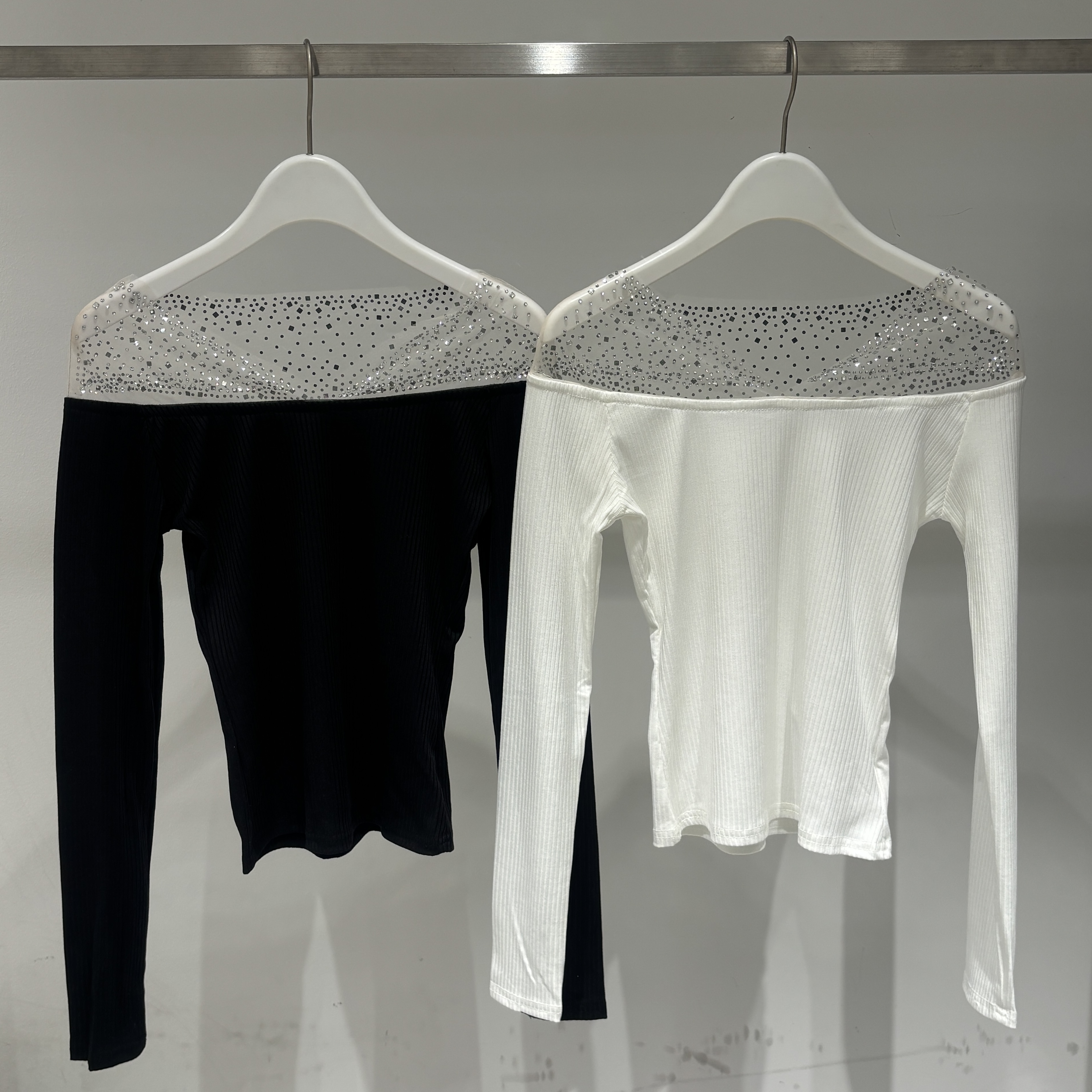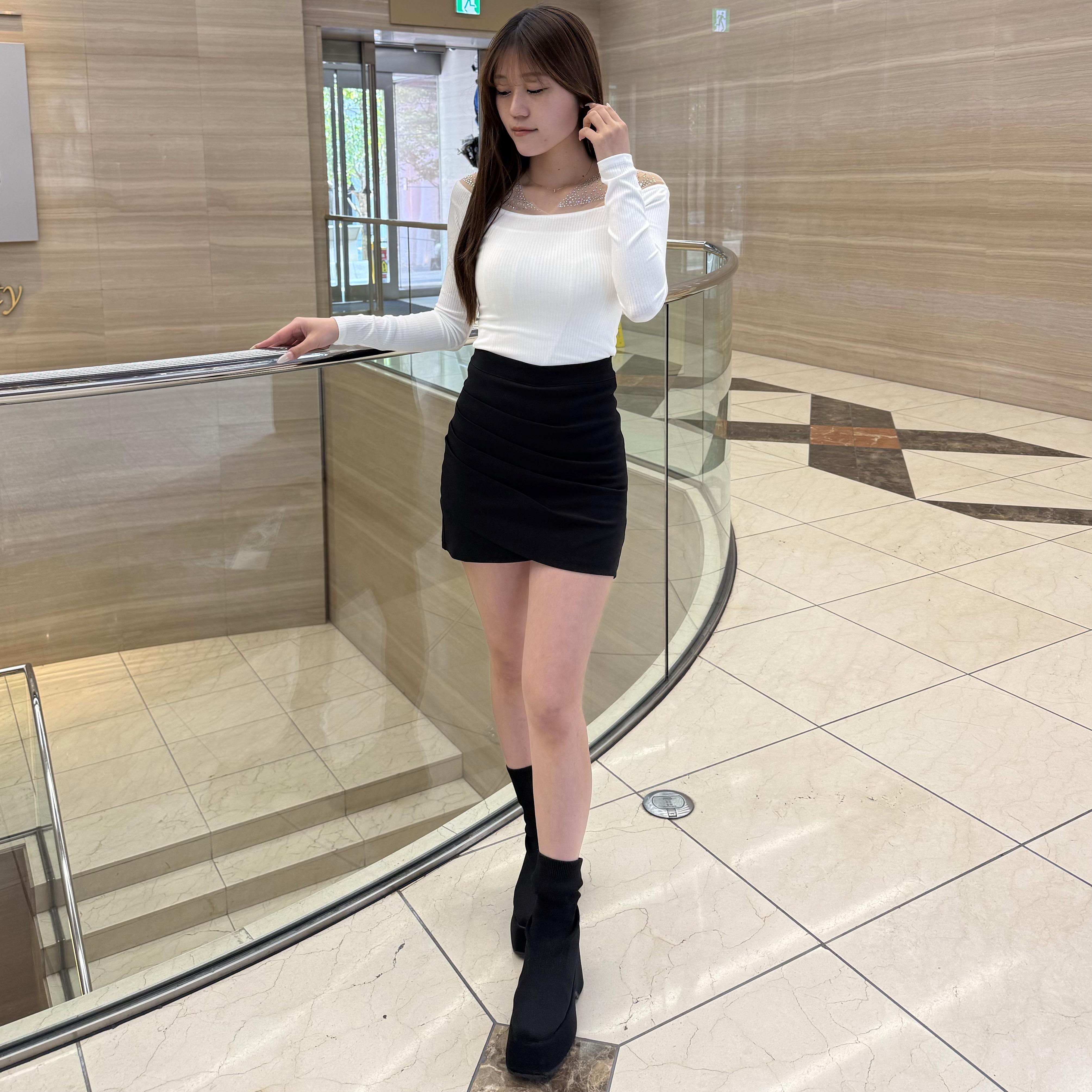 肩周りはシアーになってるのでたっぷりのラメでも重たくならず、ややタイトめなシルエットとVネックでさらにスッキリ見え!