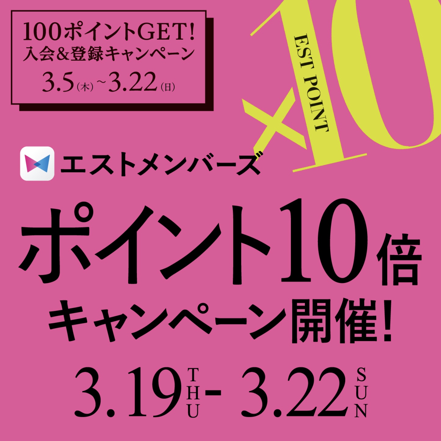 また、3/19~22の間でエストメンバーズポイント10倍キャンペーンを開催しております!是非この機会にお越しくださいね☆