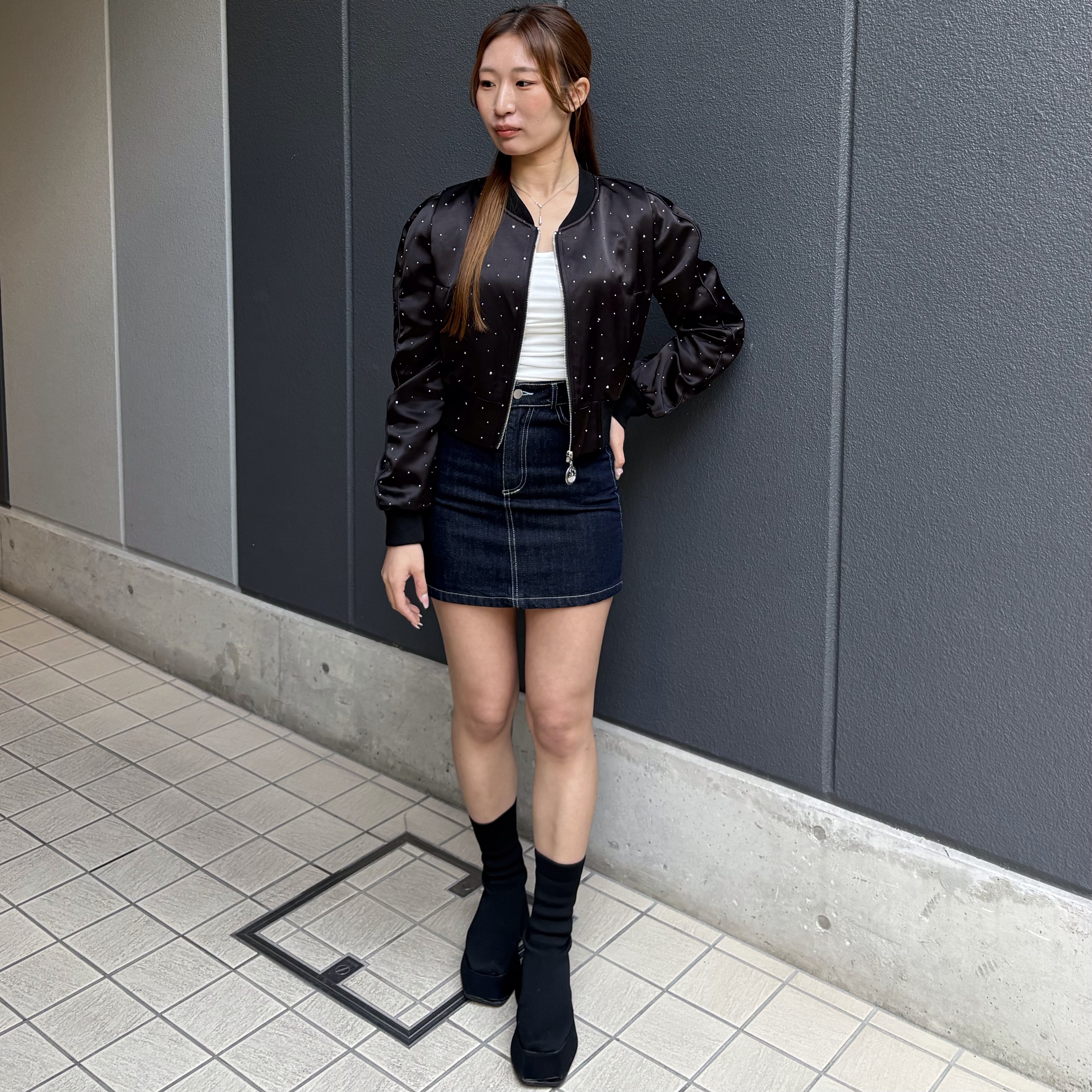 ラメストーンが目を惹くブルゾンジャケット⭐️