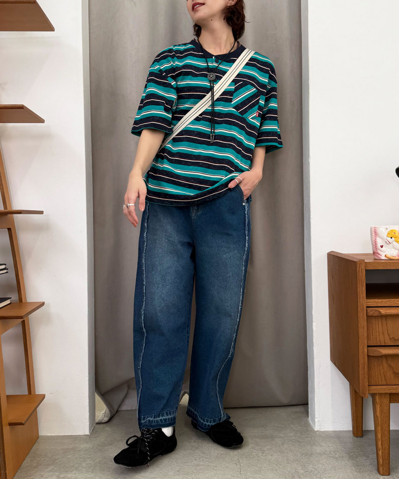白TEEやカラーTEEをあえてレイヤードで見せるのもおすすめです!!