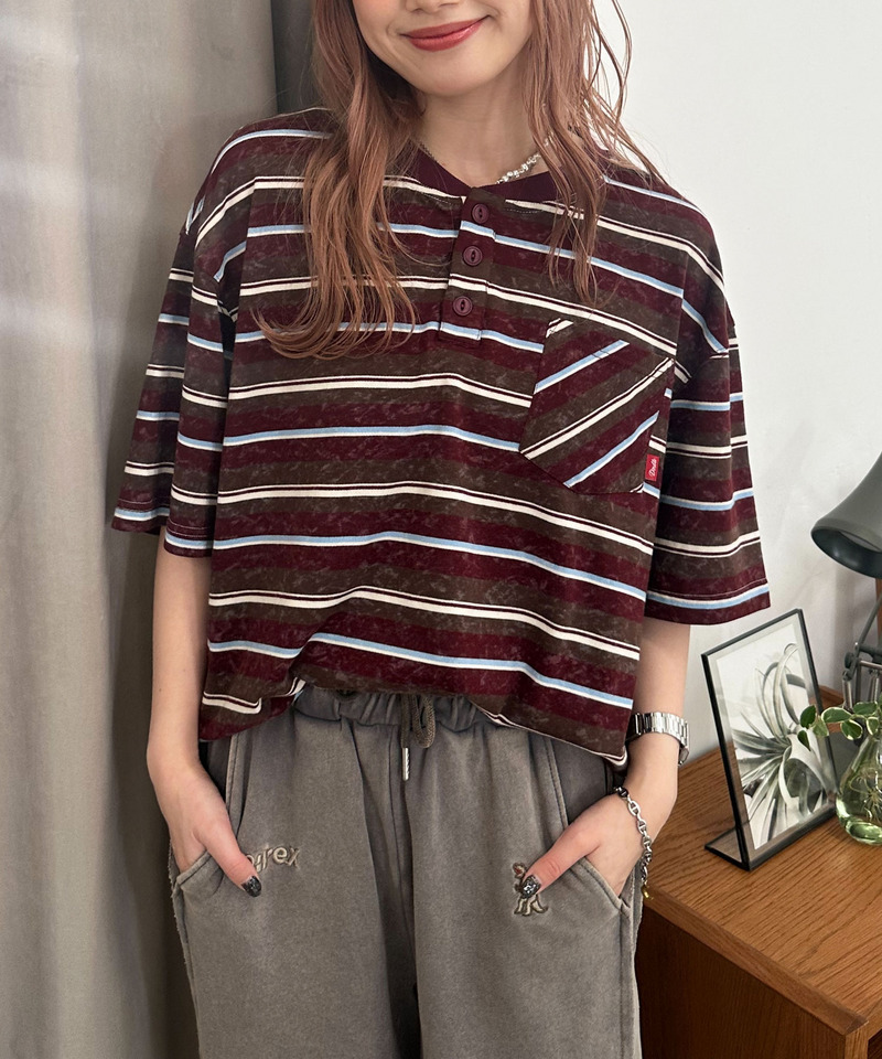 ヘンリーネック仕様で、ボタンを上まで留めたらクルーネックTEE風、