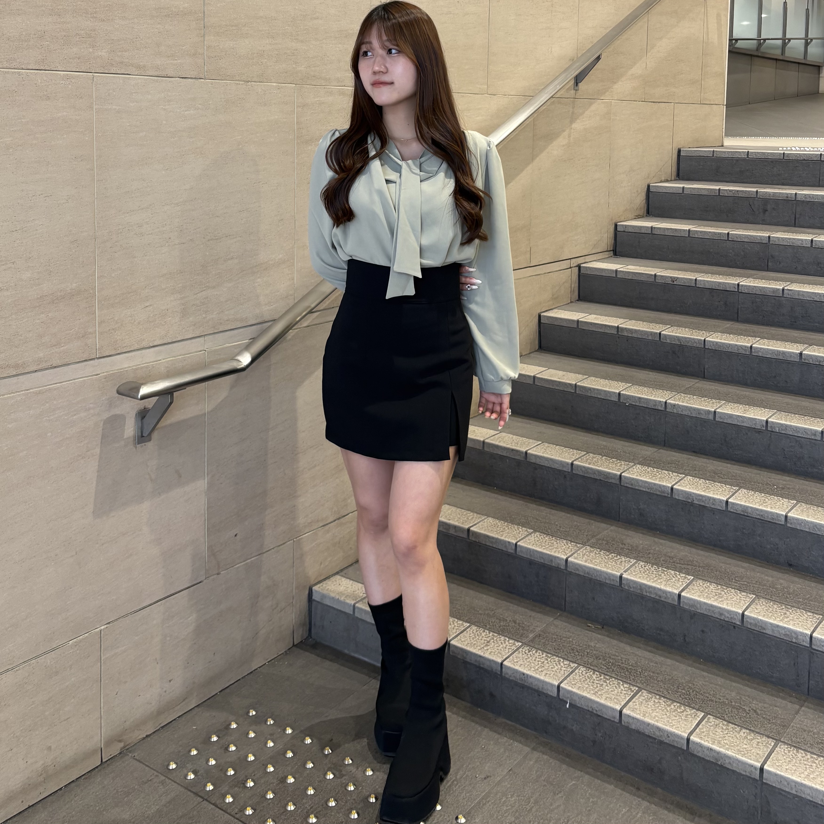 リボンタイドレープブラウス(BL102013)/ ハイウエストスリットスカート(SK111026)