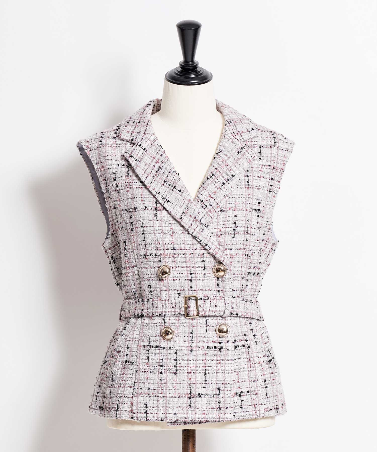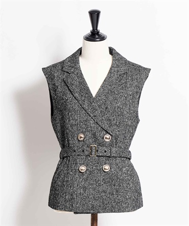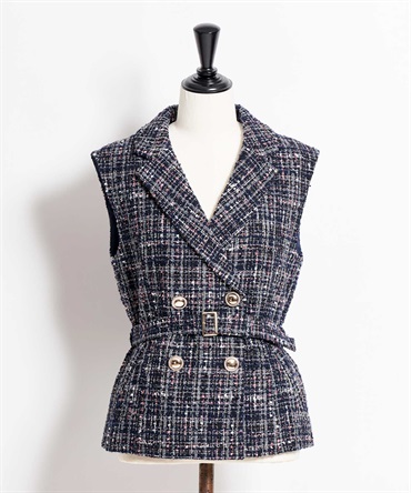 毛織産地・尾州で織り上げた、NOELAオリジナルのツイード素材を使用したジレ。