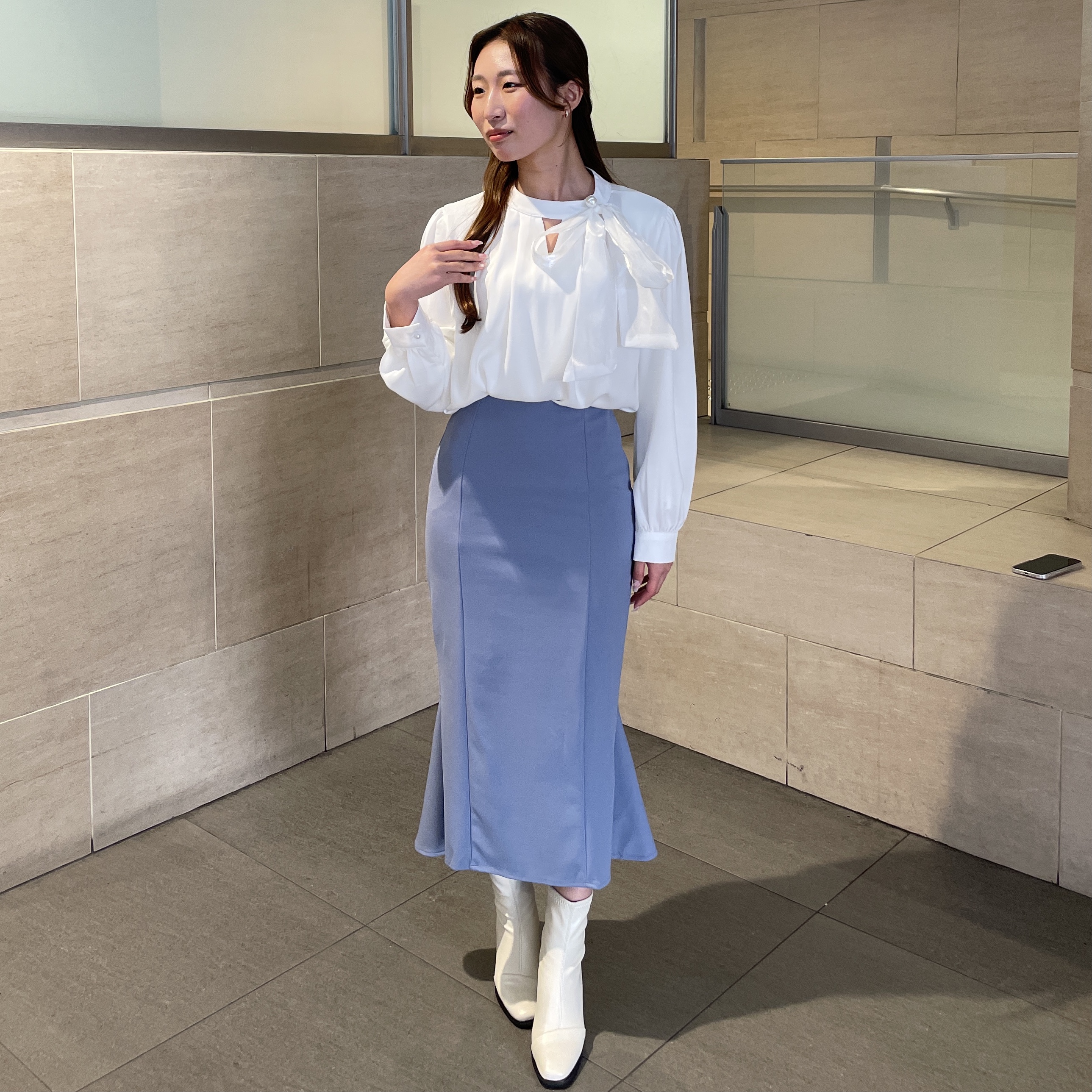 女性らしいやわらかい丸みとフレアが上品な印象のマーメイドスカートです🩷