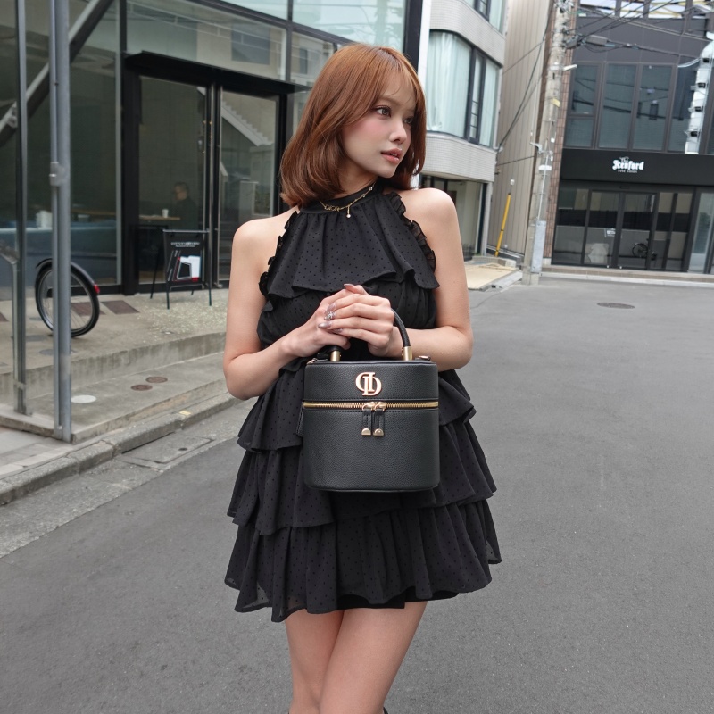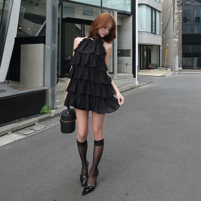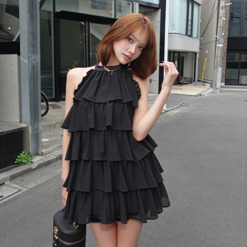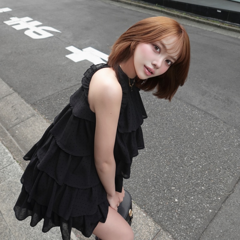 ドット柄×チュールを重ねた、華やかなティアードミニワンピース♡✨ ふんわり広がるフリルが、動くたびにドラマティックなシルエットを演出します💗 アメスリデザインで甘さの中に色っぽさをプラスした、一枚で主役級の一着です💫