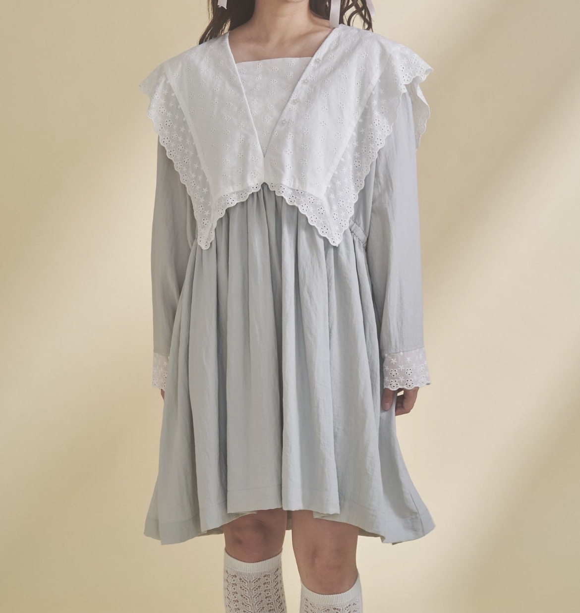 超ビッグサイズのセーラーカラーが目を引くワンピース。