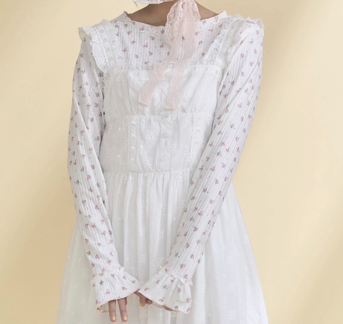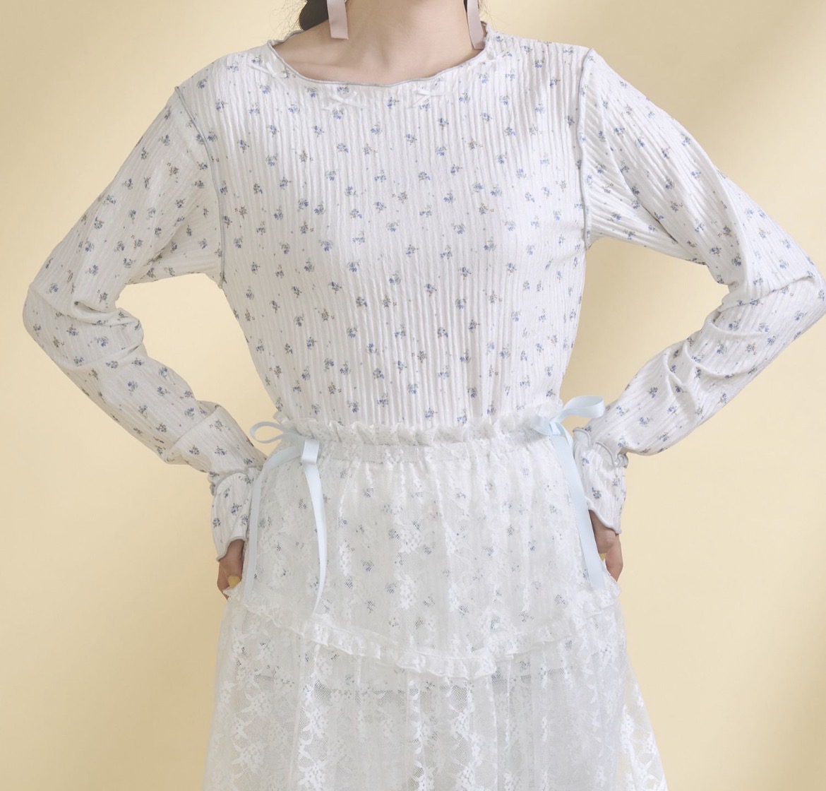 首回りの華奢なリボンは甘すぎずアクセントに〇