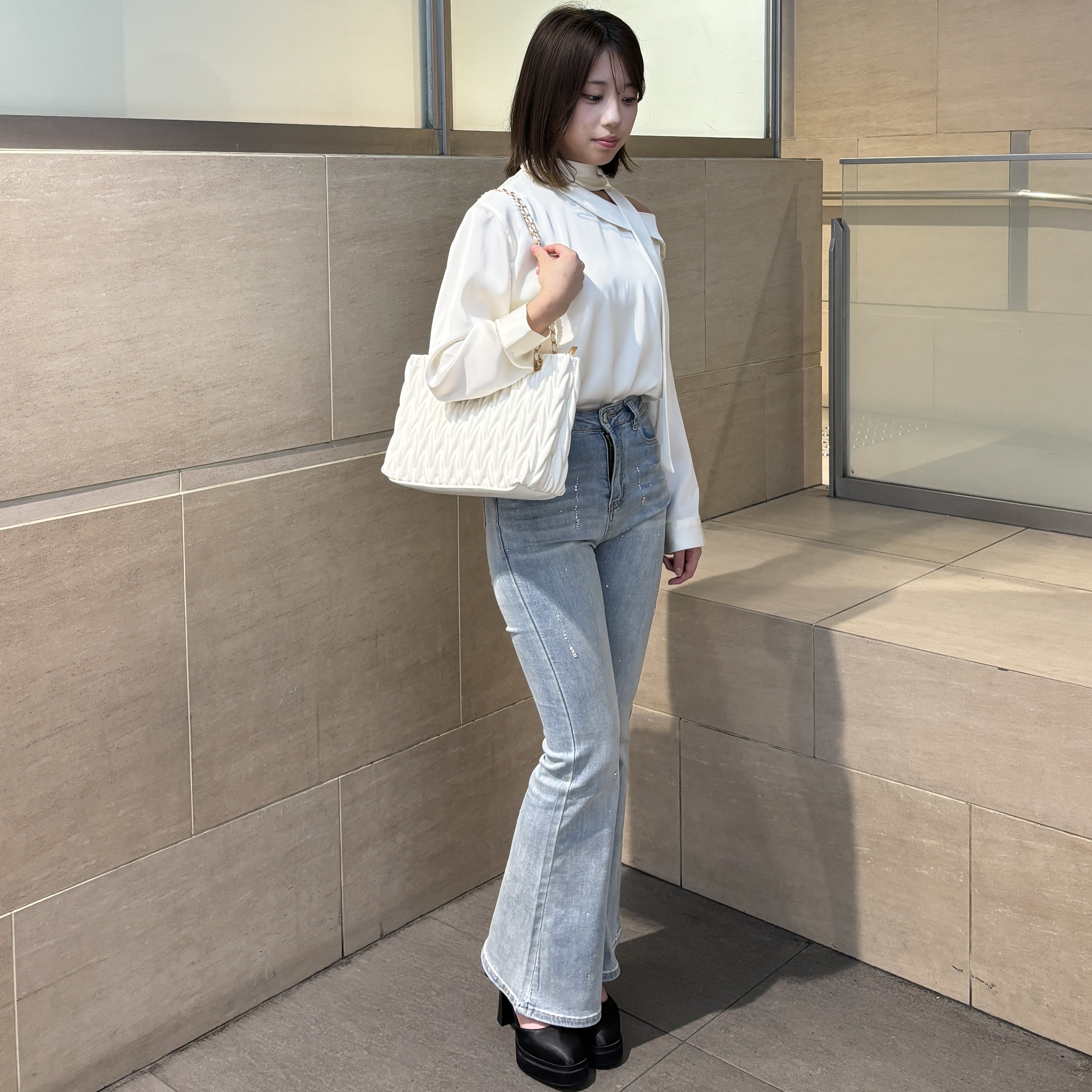 ゴールドチェーンと金具が華やかでコーデを大人っぽい印象にしてくれます🙆🏻♀️