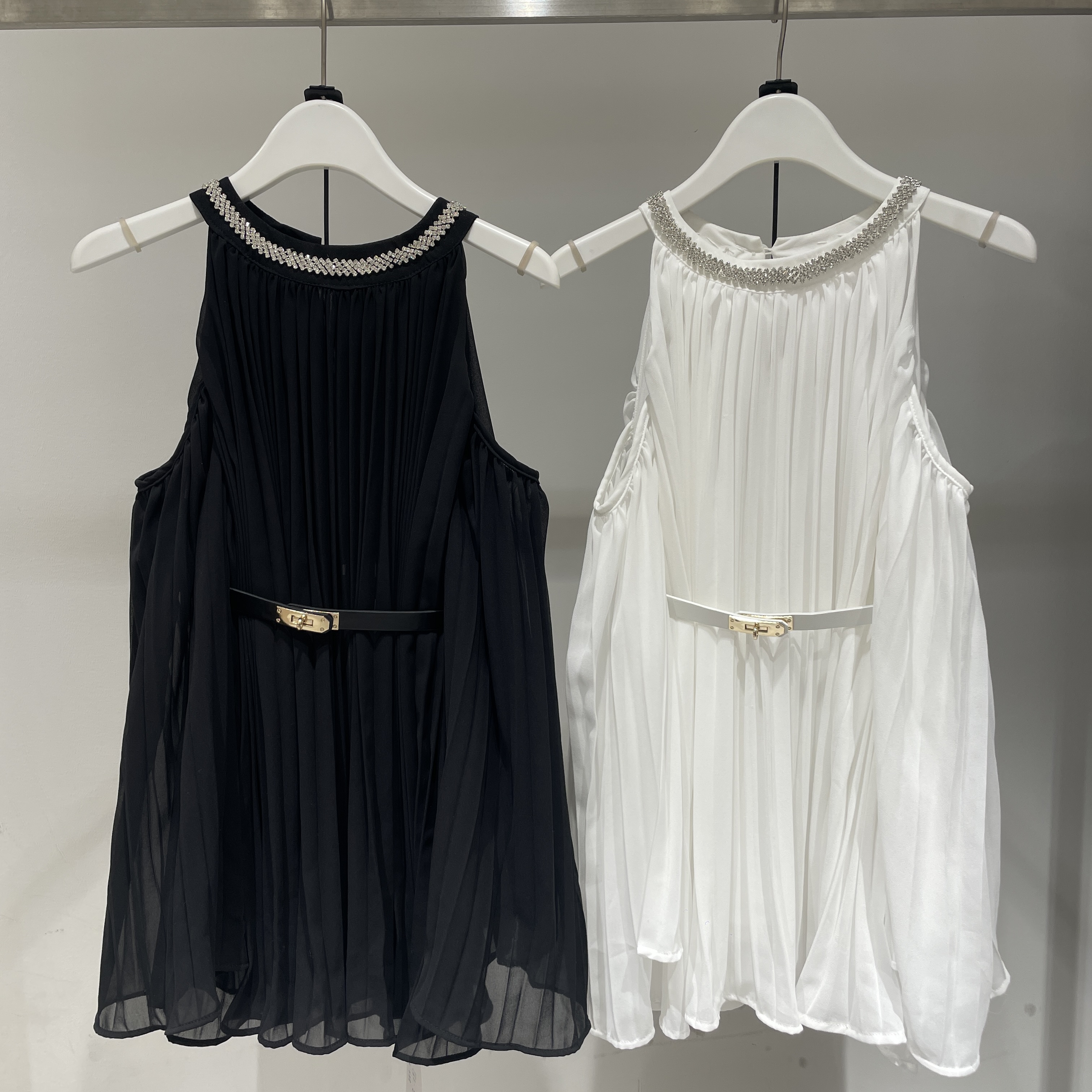 ◯ベルト付きビジュープリーツブラウス ¥6,980(tax in)