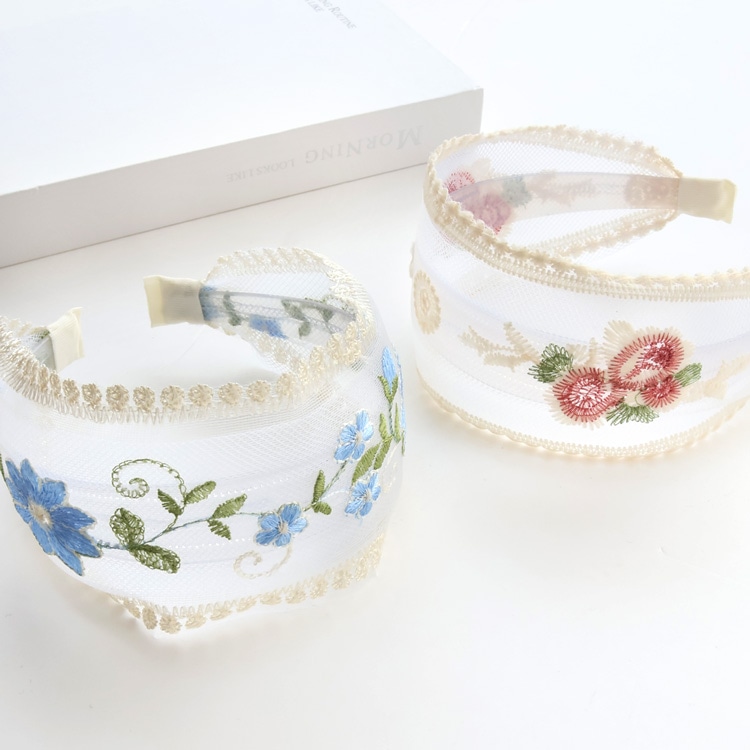 2色展開のお花の刺繍が可愛いシアーカチューシャです♡