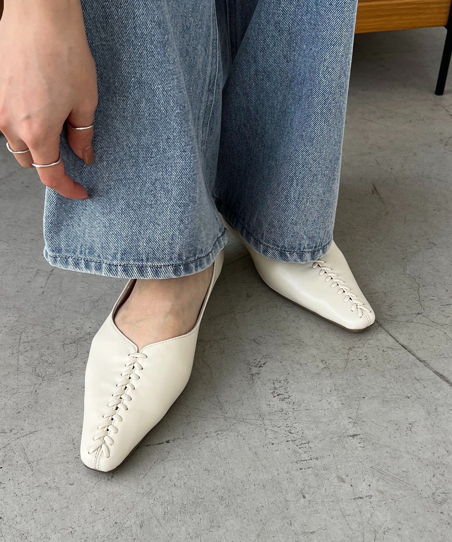 柔らかい作りで馴染みがよく長時間歩いても疲れにくい! 中敷きやかかとにクッション性があり履き心地◎ ややスクエア気味なトゥデザインがすっきり大人見えします♡