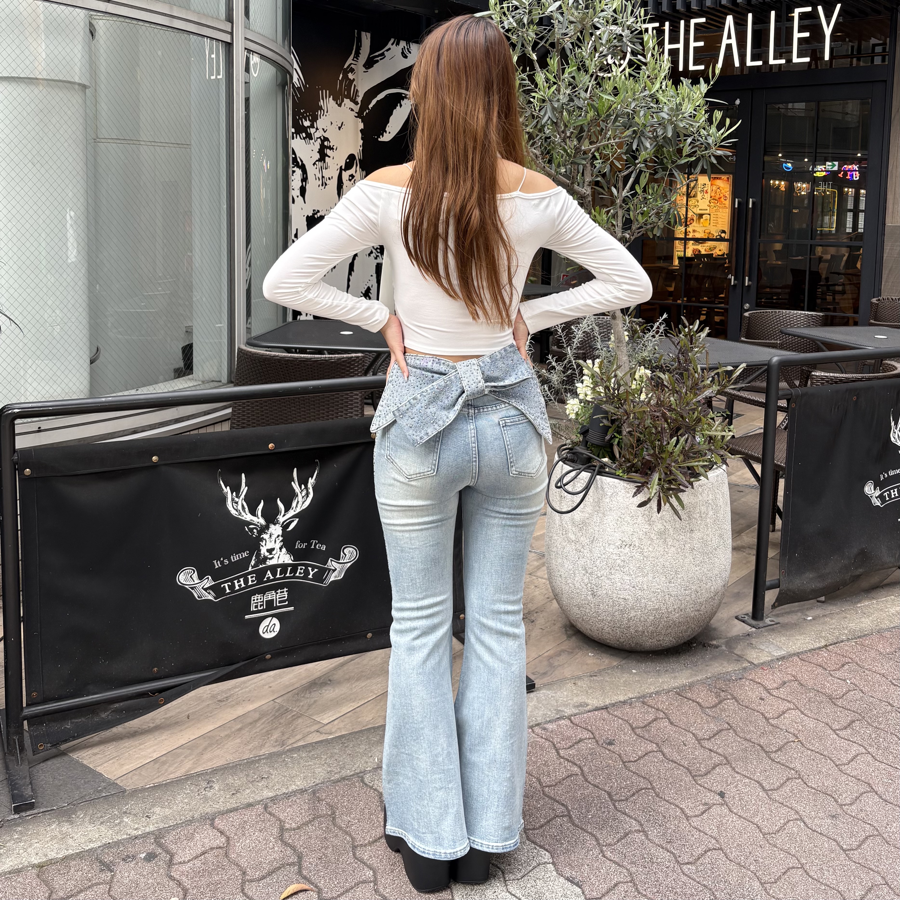 バックのリボンが主役のフレアデニム👖💞