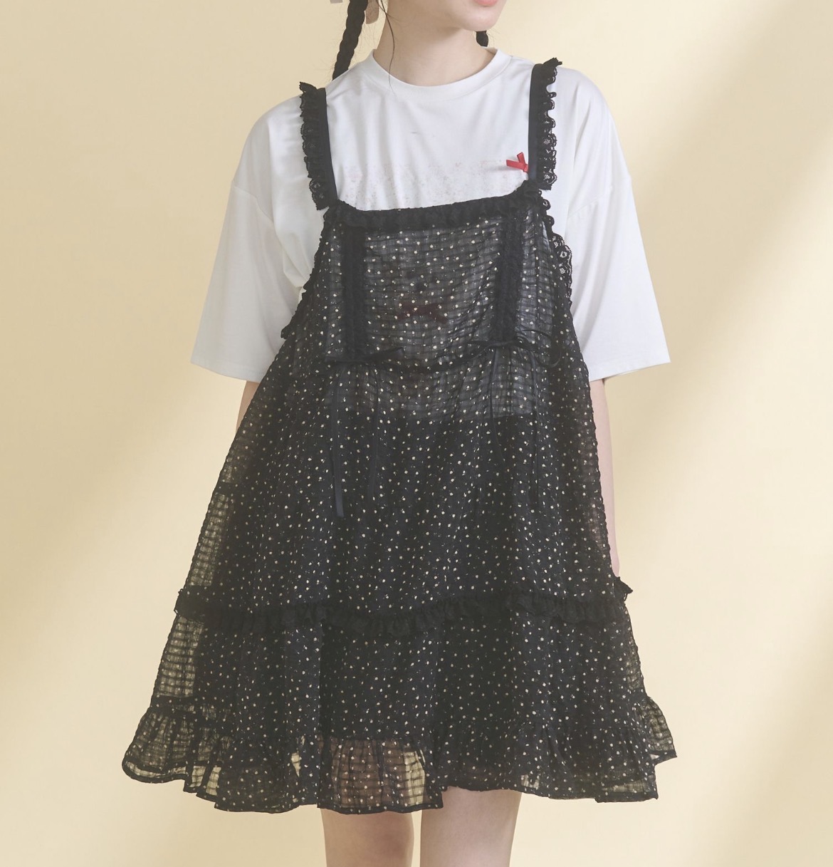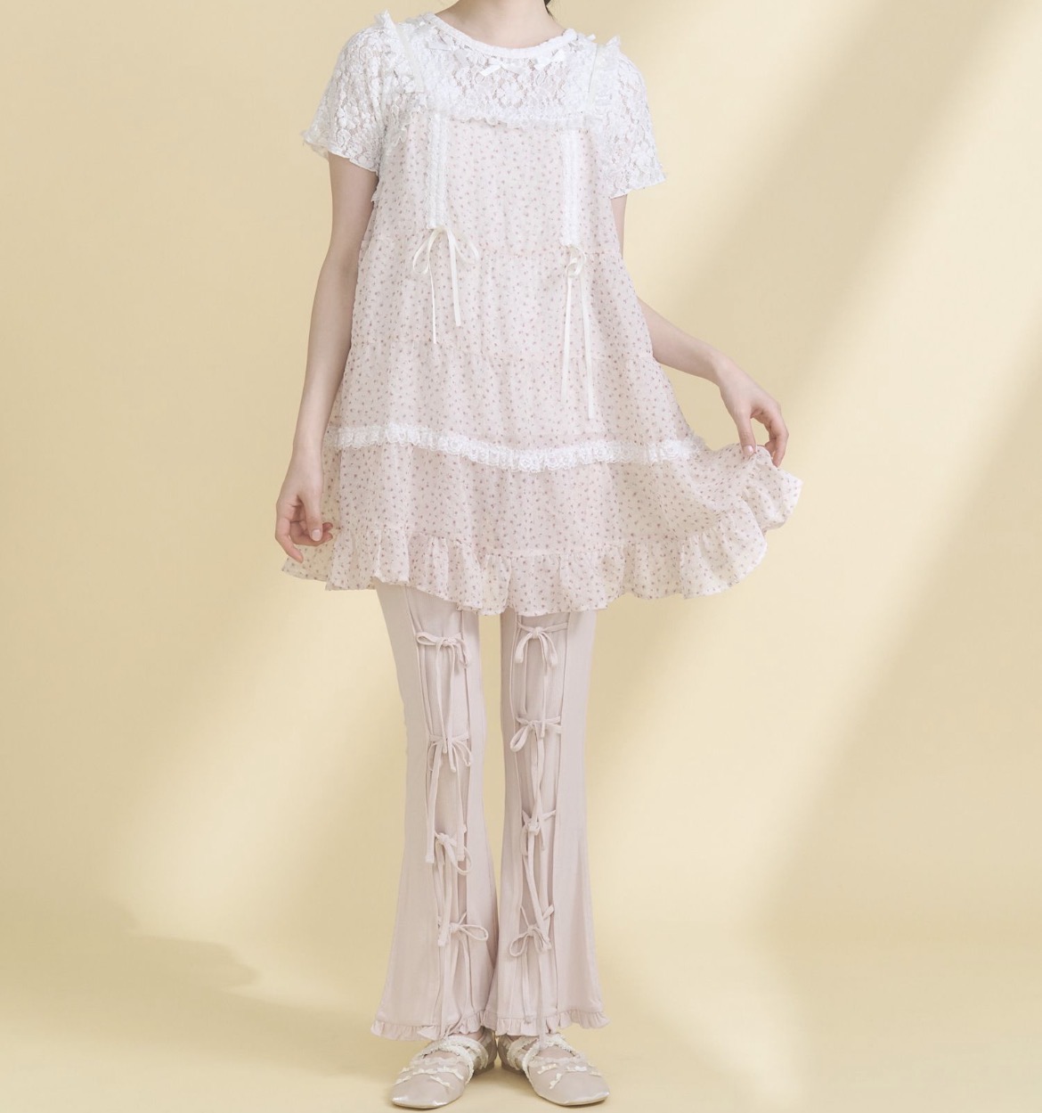 ブラウスやミニスカートと合わせて甘さを強めたスタイリングもおすすめ。