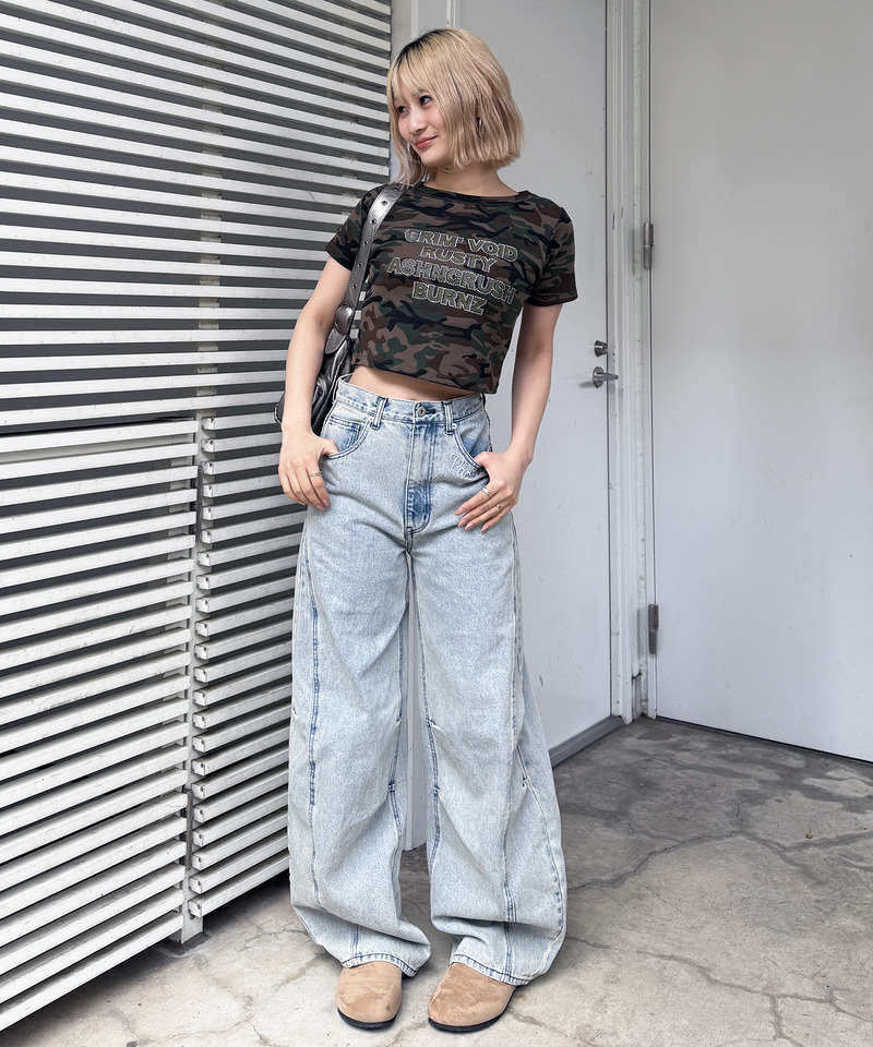 無地の展開もありトップスを選ばずコーデしやすく、ストリートからガーリーまで幅広く着回せる万能ボトムスです。
