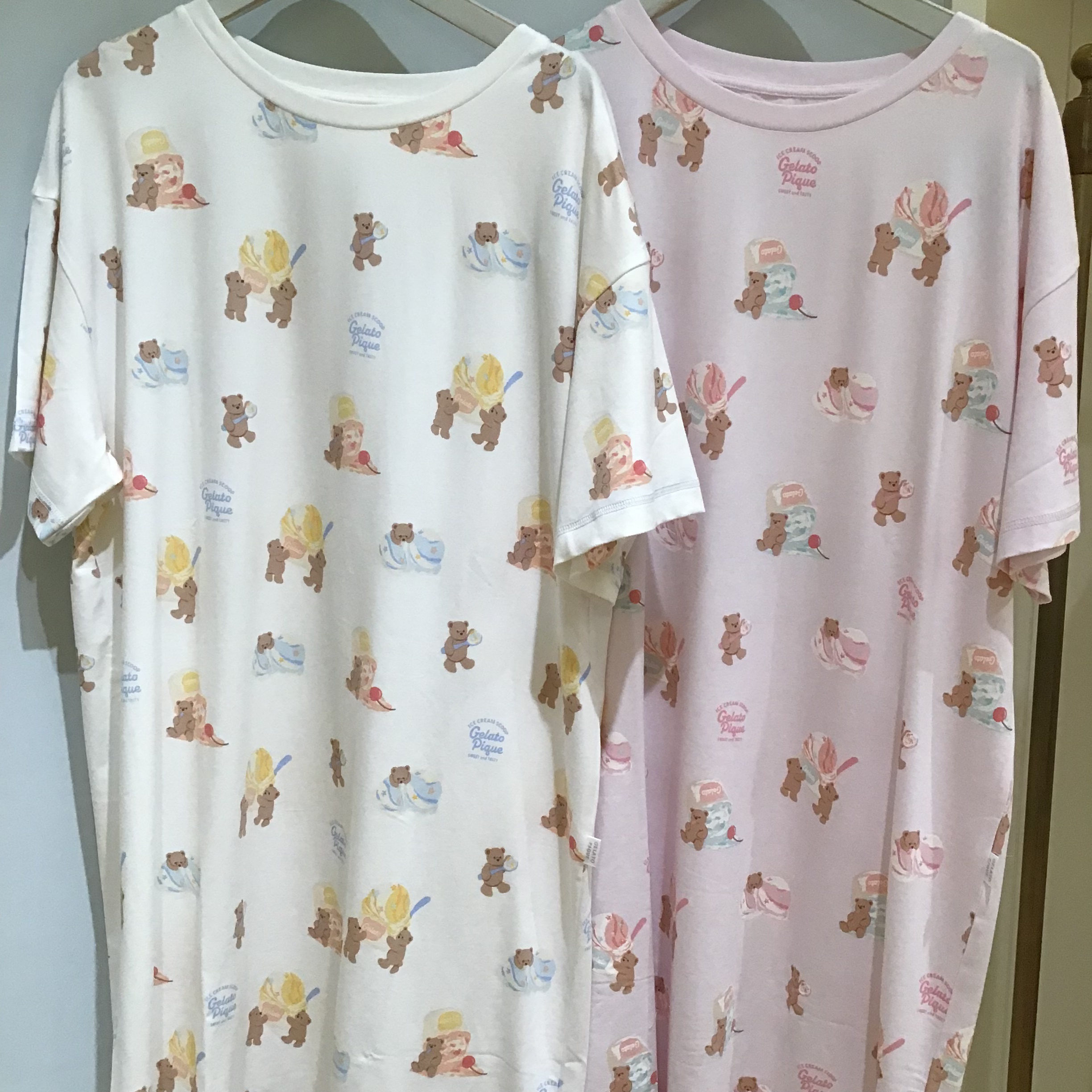 接触冷感加工を使用した総柄プリントのワンピースは、お風呂上がりなどに1枚でざっくりと着用いただけるビッグシルエット。丈が長すぎず、締め付け感もないので汗ばむ時期にぴったりの1枚です。大きなアイスクリームを運んだり、スプーンで美味しそうに食べている愛らしいベアの絵柄を、ロゴと組み合わせてキャッチーにプリント。袖や裾に入れた配色ステッチでアクセントを効かせ、可愛い印象に仕上げています。色はクリームとピンクの2色展開。同時期に展開するスムーズィーライトのグラデーションボーダーパーカとの組み合わせもおすすめです。HOMME、KIDS、BABYアイテムとリンク・コーディネートもお楽しみください。