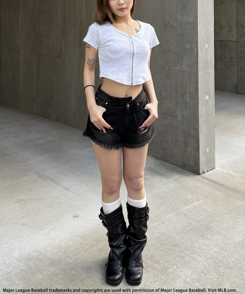 ショート丈デザインでウエスト周りをすっきりと見せてくれます。