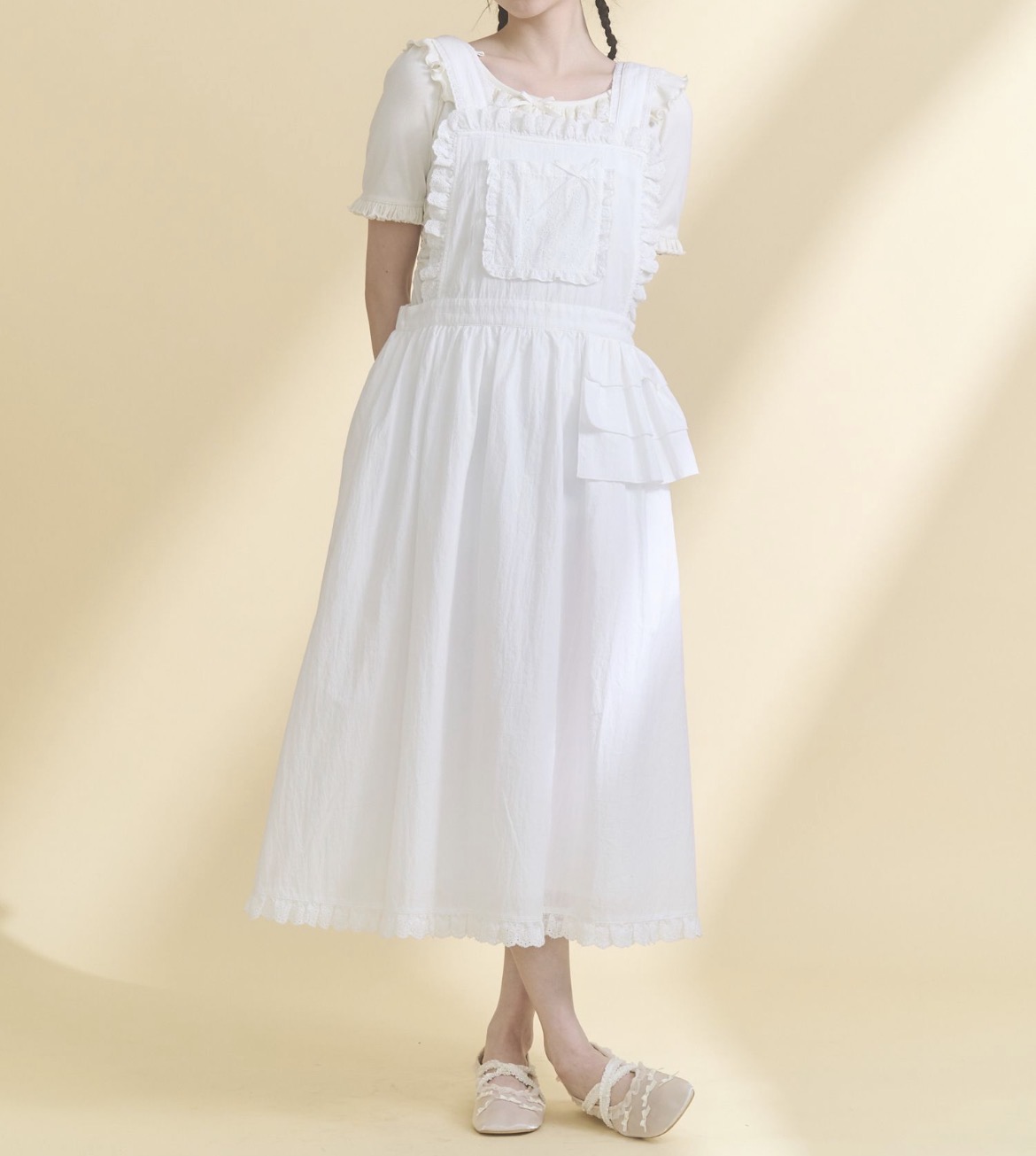 まるでエプロンのような雰囲気が可愛い、レイヤードワンピース。