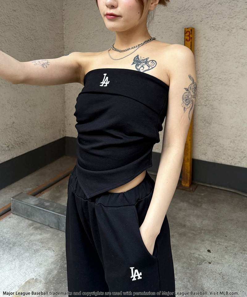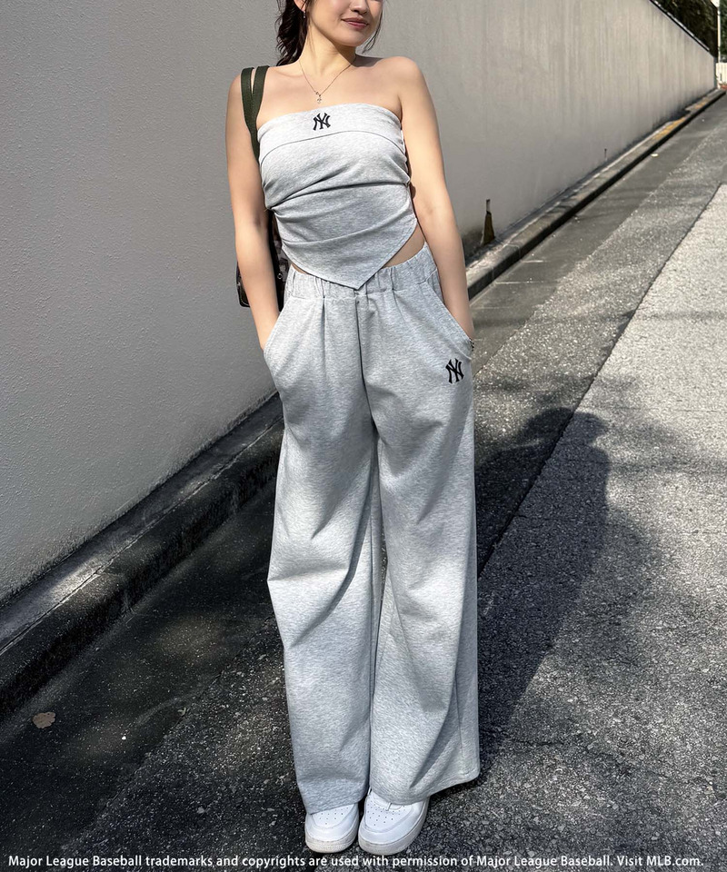 ヘルシーな肌見せが叶うベアトップとワイドパンツのセットアップです。