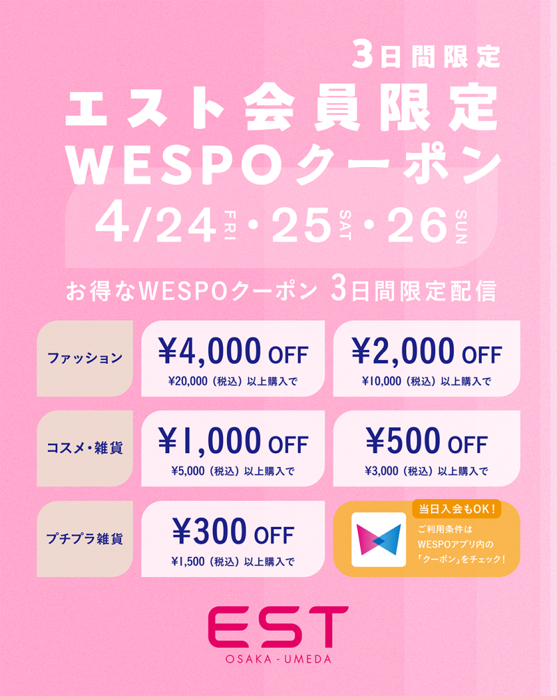 ※WESPOアプリをお持ちの、エストデジタルカード会員様限定で
