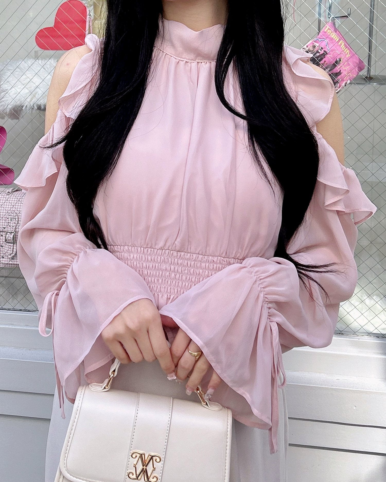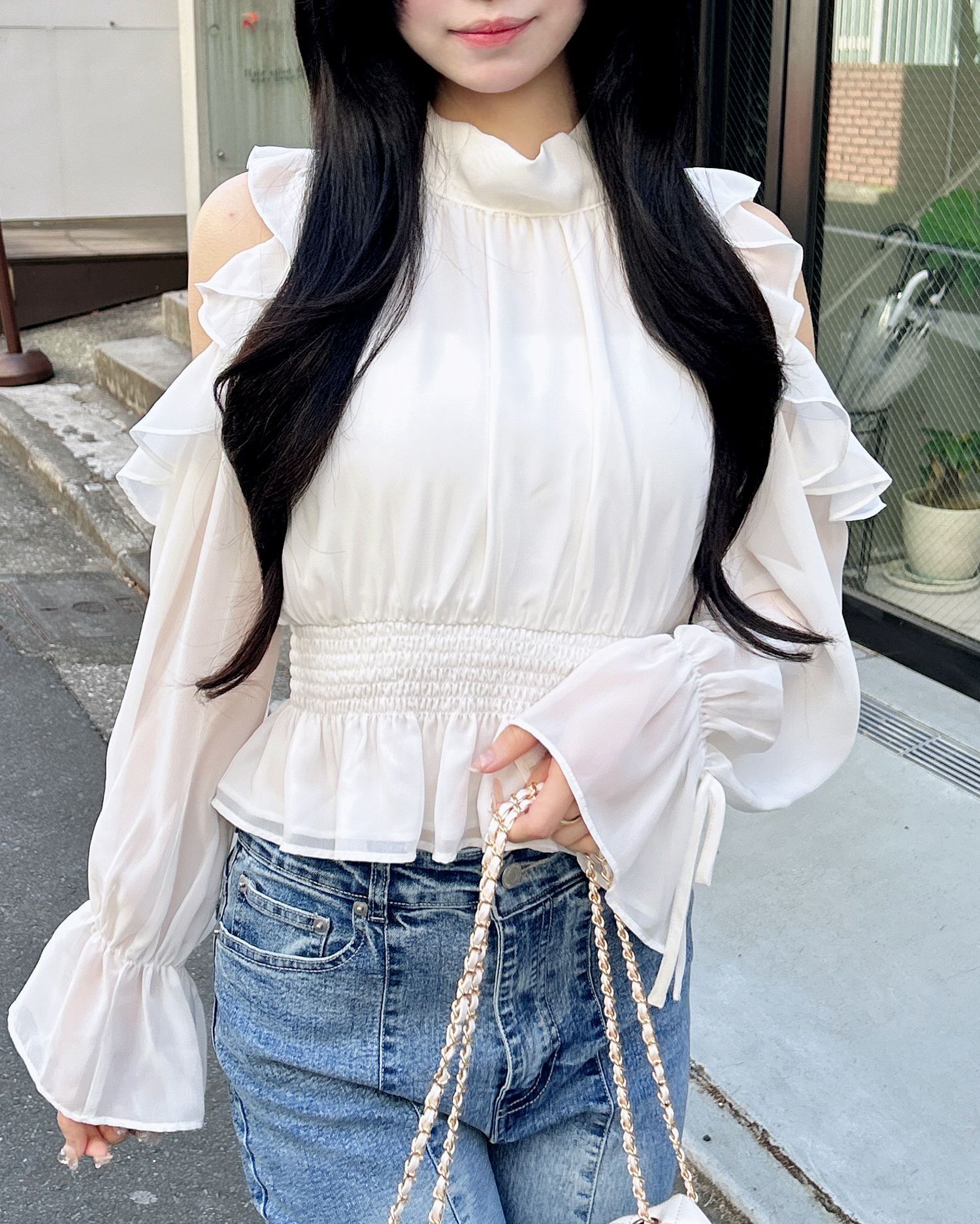 ●1261-200152 2wayリボン肩あきフリルブラウス