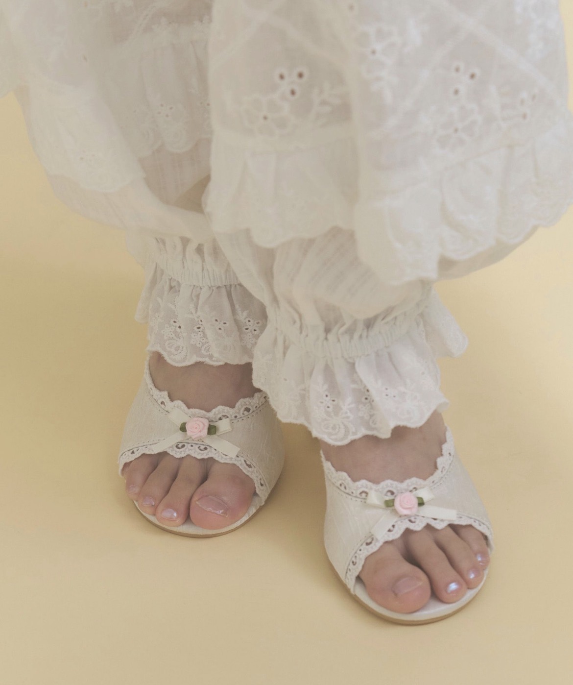 華奢なストラップで足首はすっきり、抜け感のある印象に。
