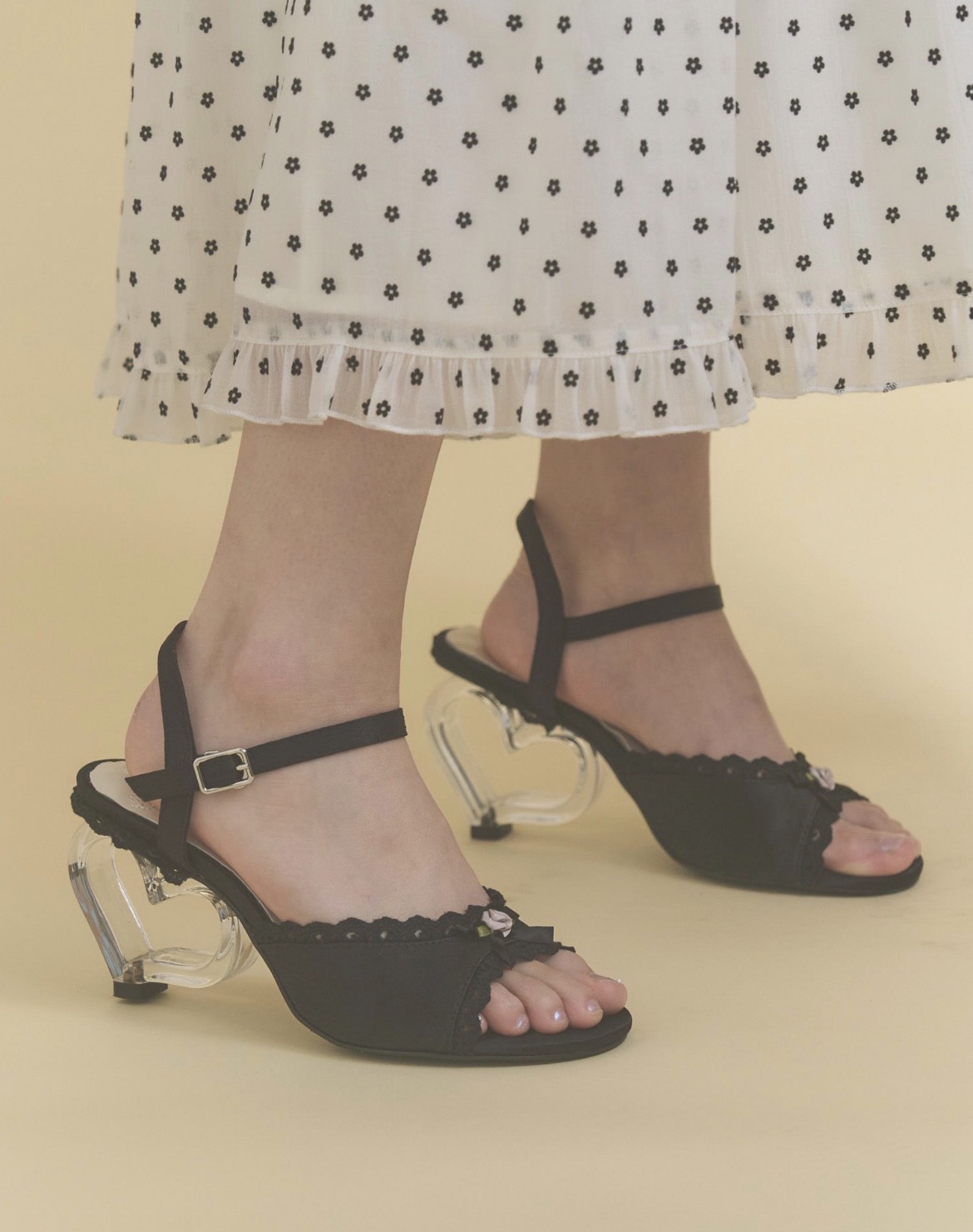 クリアなハートがきらっと目を惹く、とっておきなサンダル。