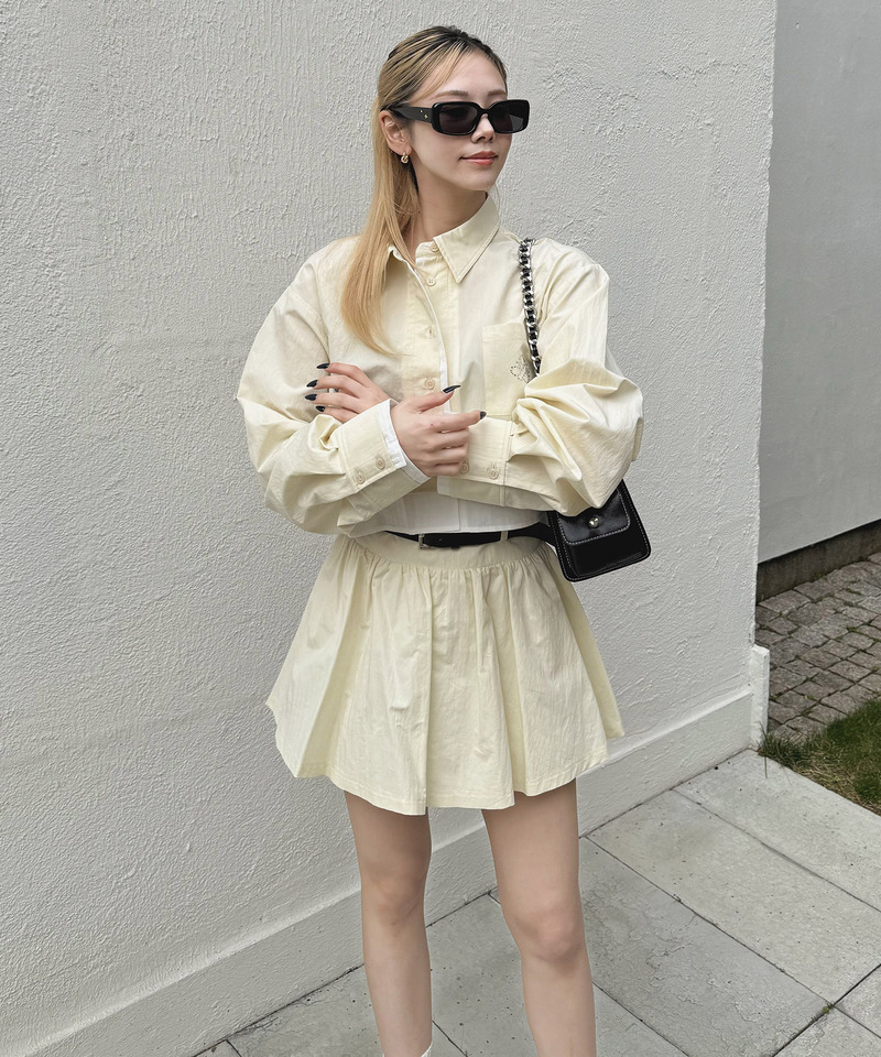 オーバーなサイズ感とトレンド感のある短丈シルエットで、バランスの取りやすいスタイリングに仕上げました。