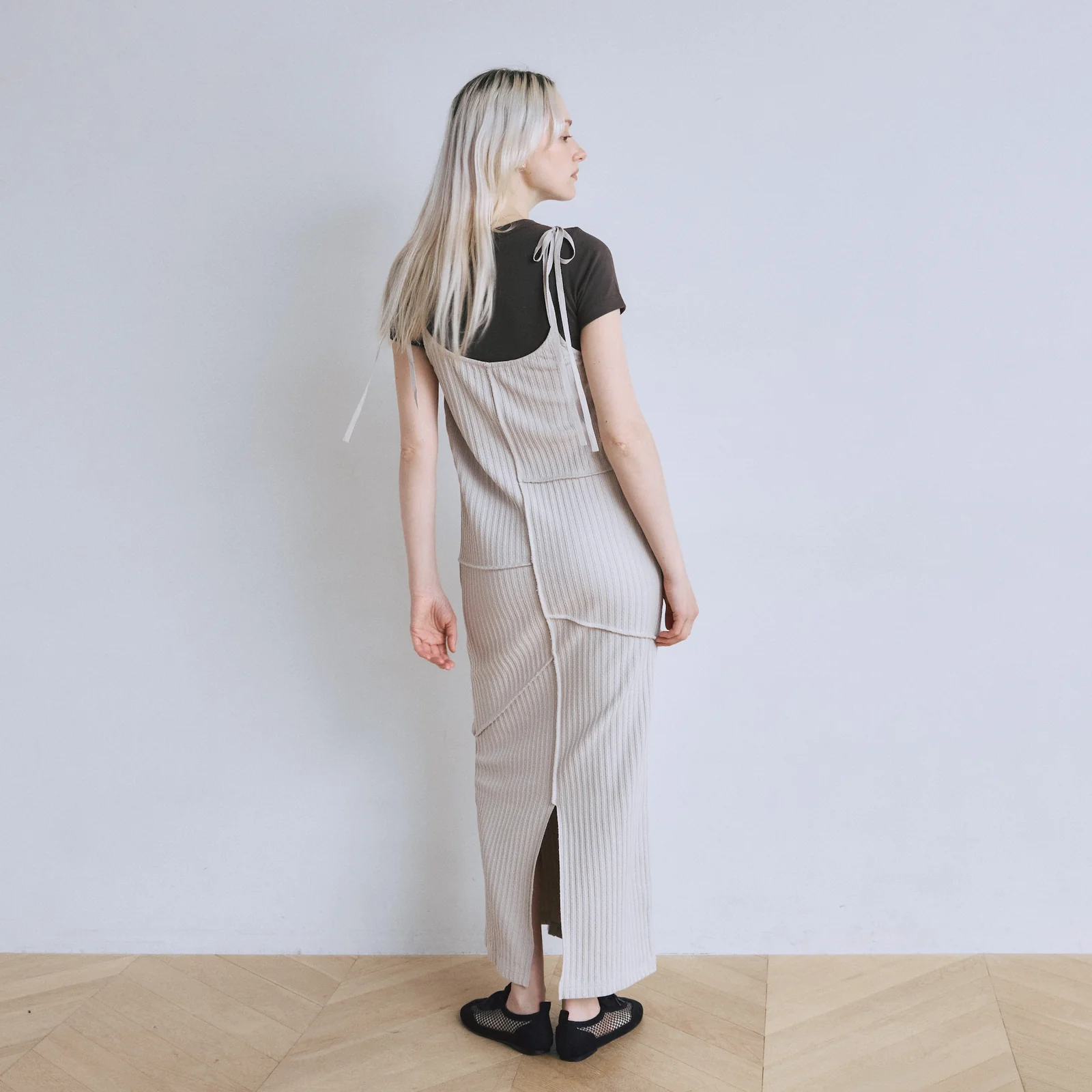 リブの縦ラインを活かしつつフロントとバックにパネル状の切り替えを施しました。