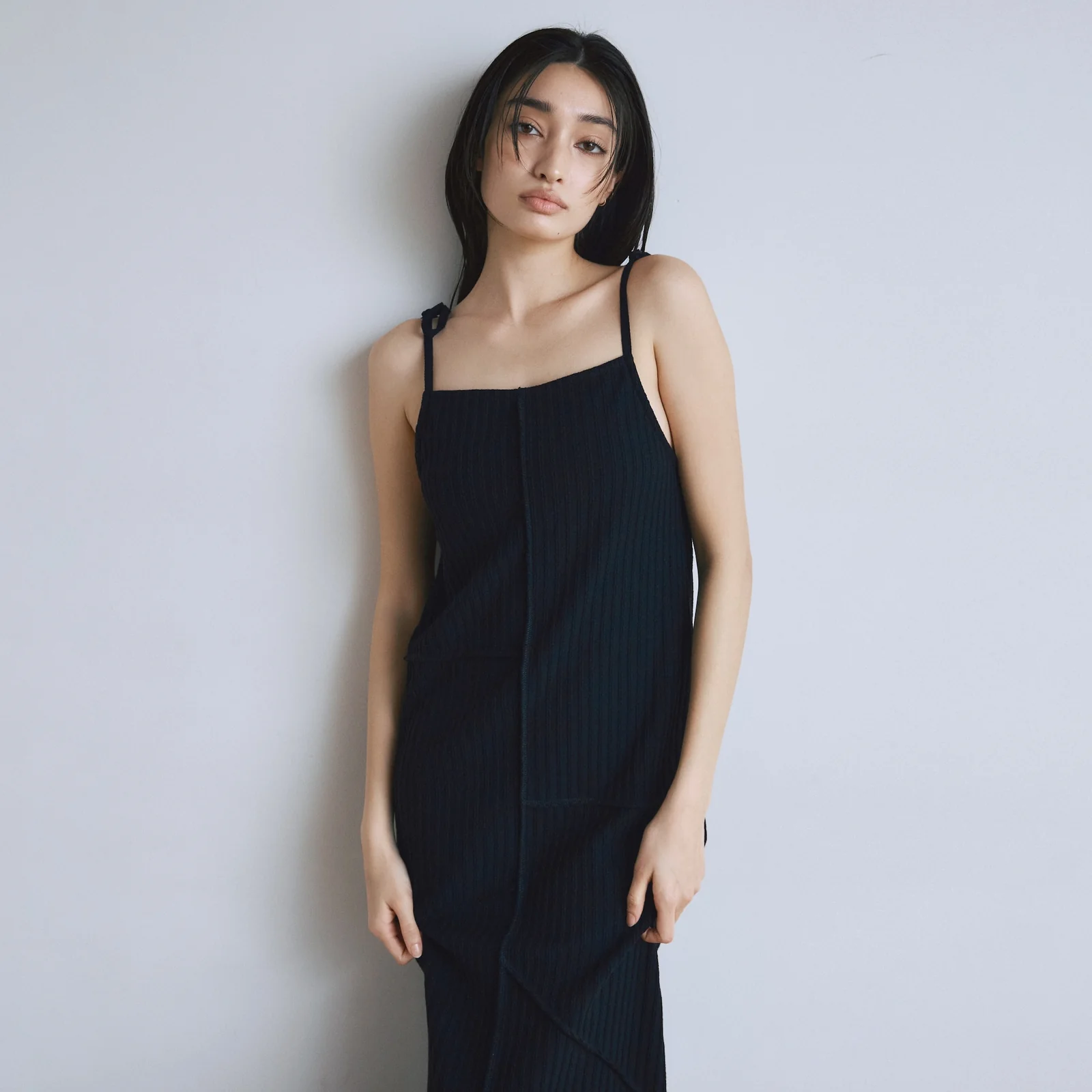 計算されたIラインシルエットと立体感を生むアウトシームの切り替えが、ボディラインを拾いすぎずスッキリとしたスタイルアップを叶えます。