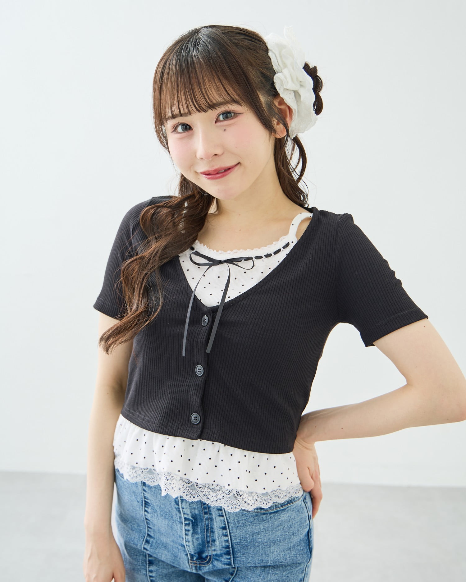 ●1261-100247 キャミドットカーデレイヤードトップス ¥3289(tax.in)