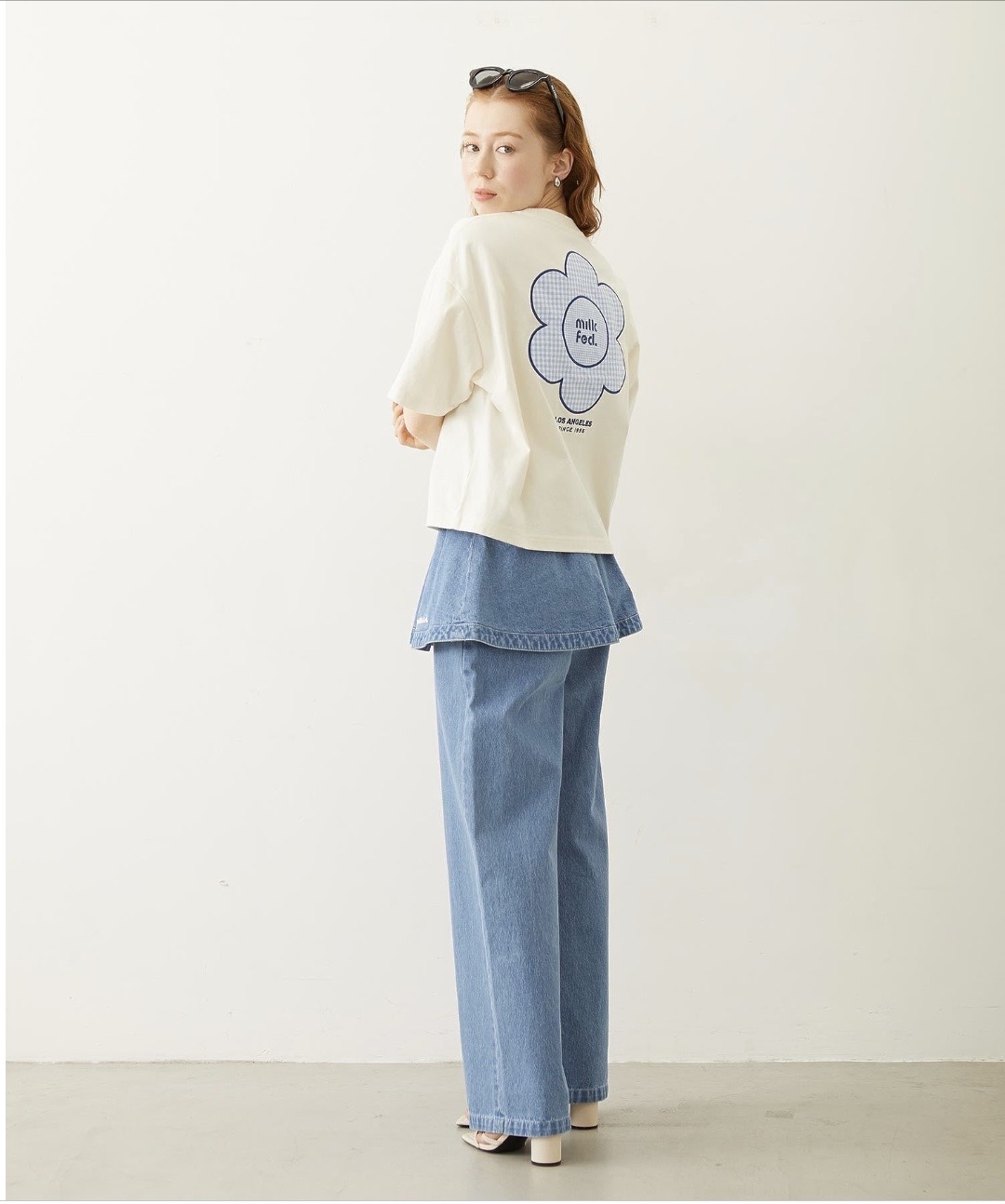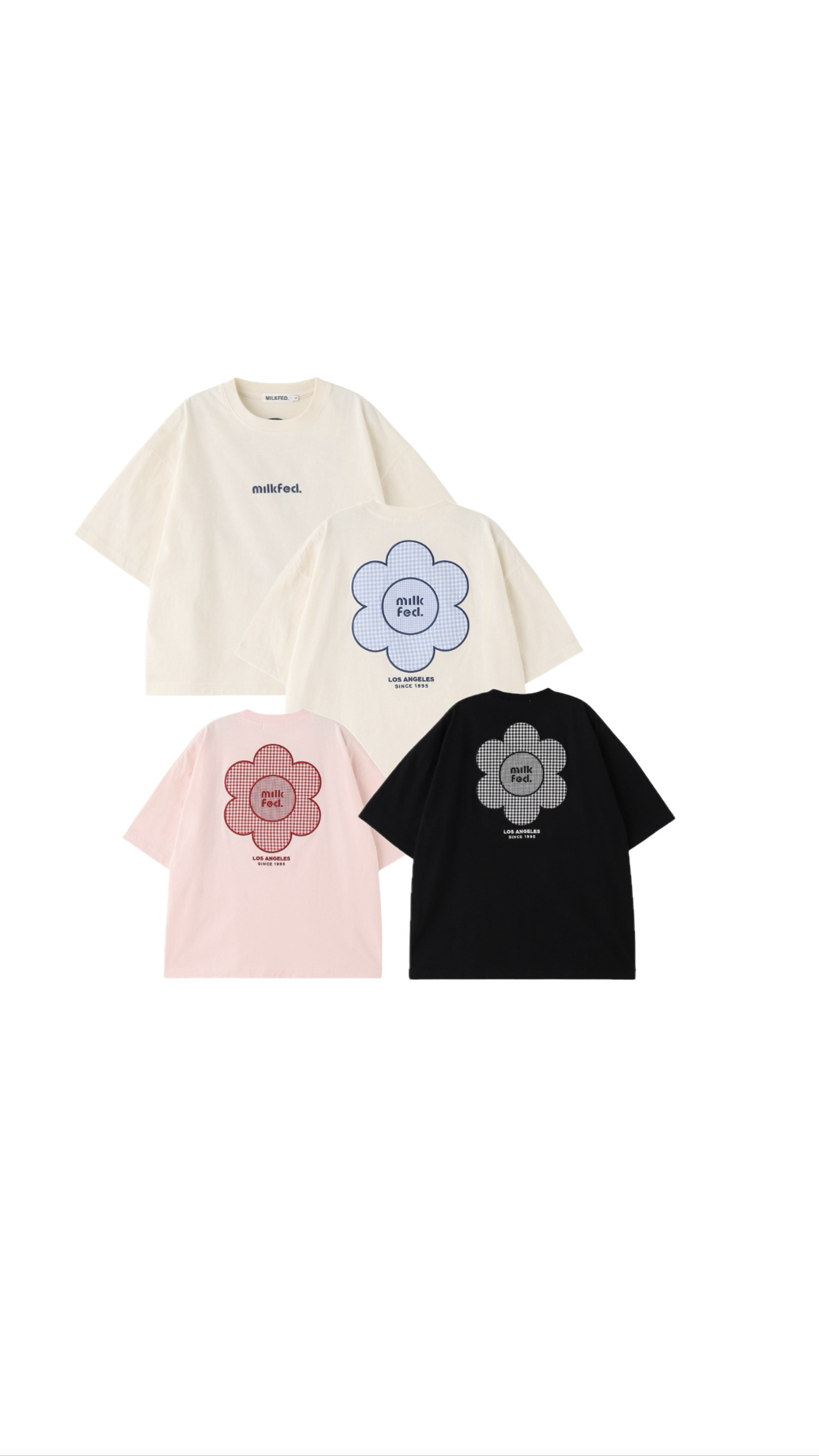 ★CUT OUT LOGO GINGHAM FLOWER WIDE S/S TEE★