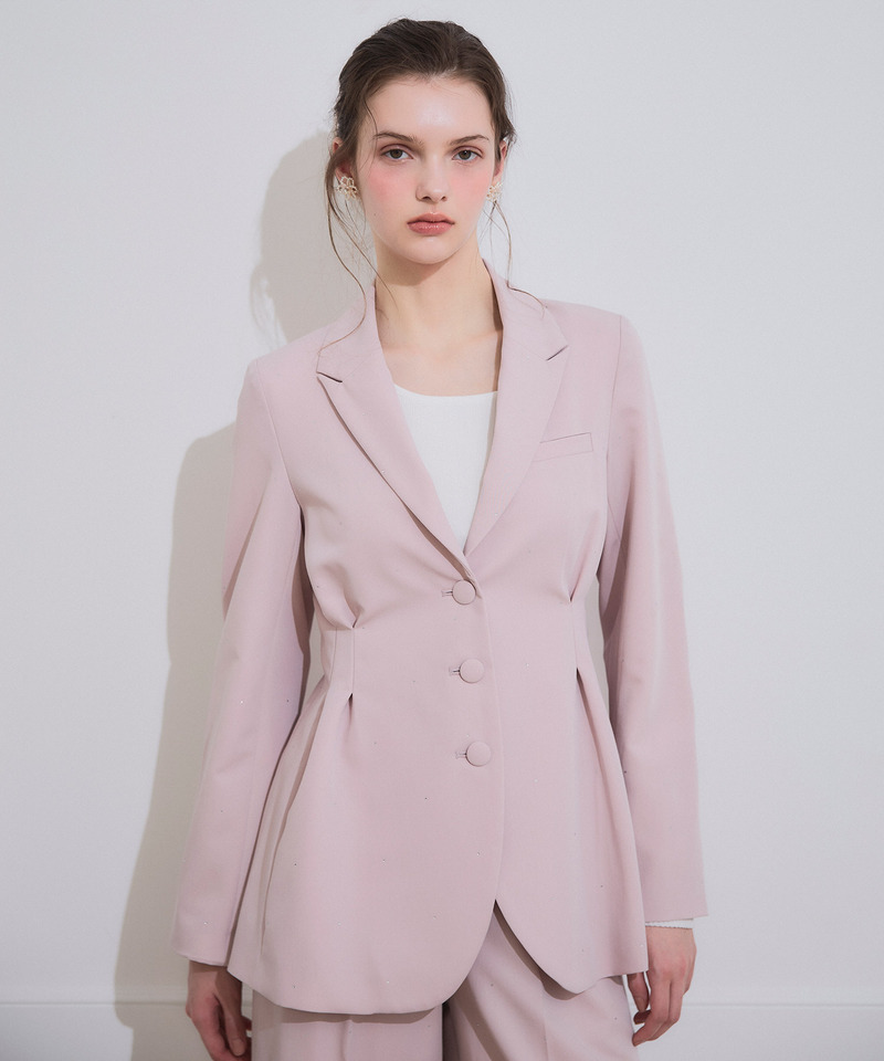 上品に煌めくラインストーンを存分にあしらい洗練された輝きを纏うテーラードジャケット。