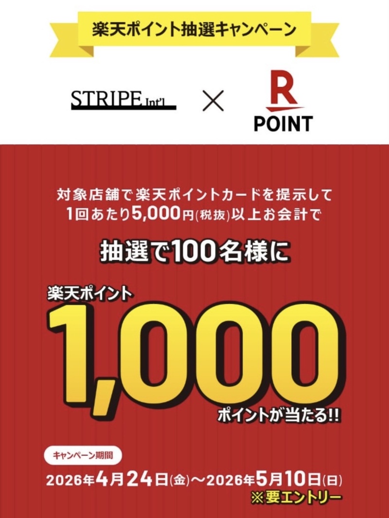 対象店舗で楽天ポイントを提示して、指定金額以上お買い上げで抽選で100名様に、楽天ポイント1,000Pが当たる!