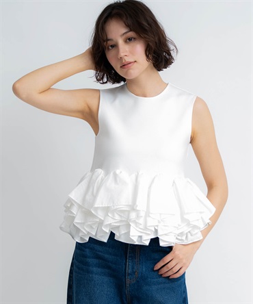 前後どちらでも着用できる2WAY仕様のペプラムカットソー。